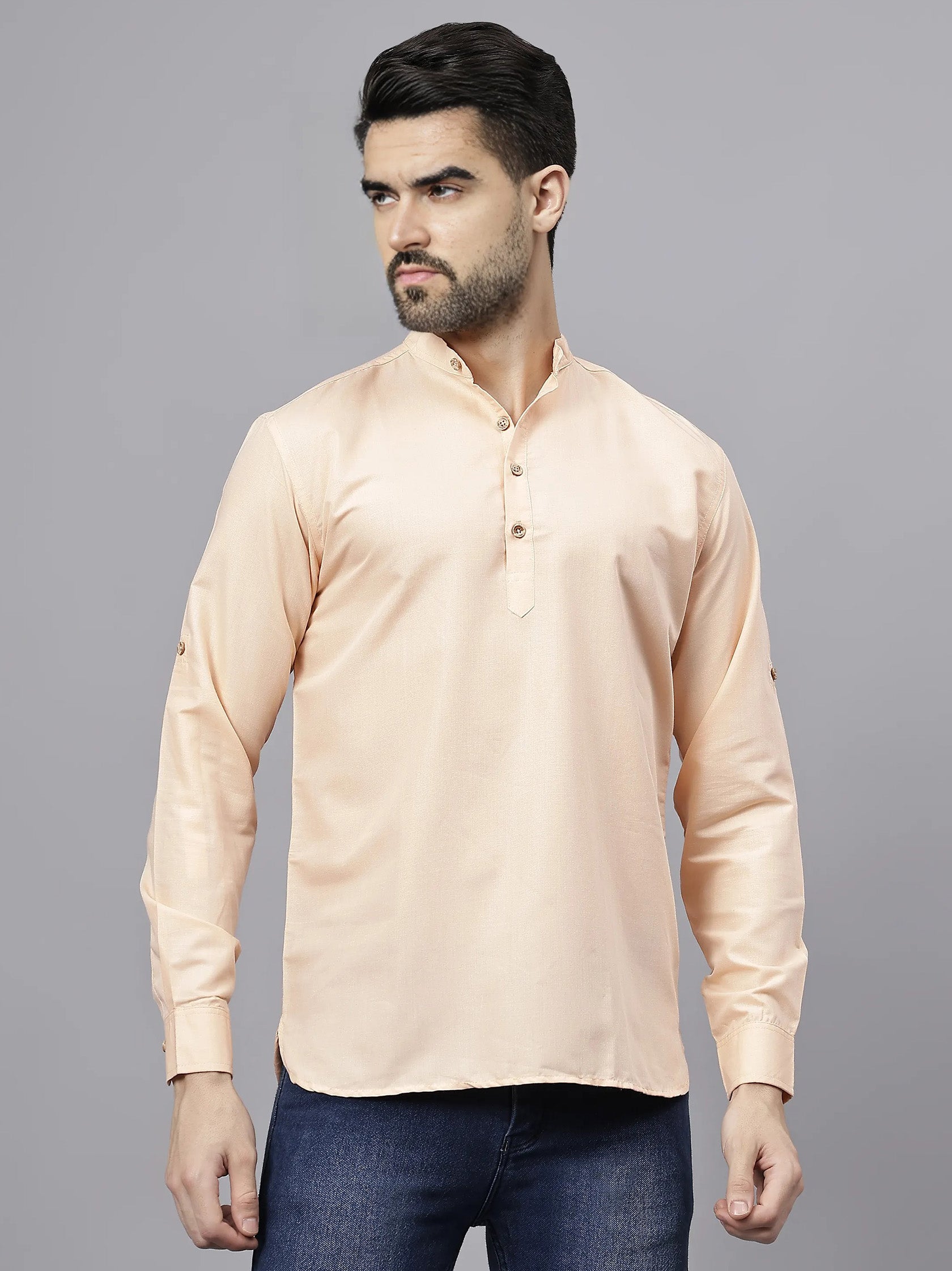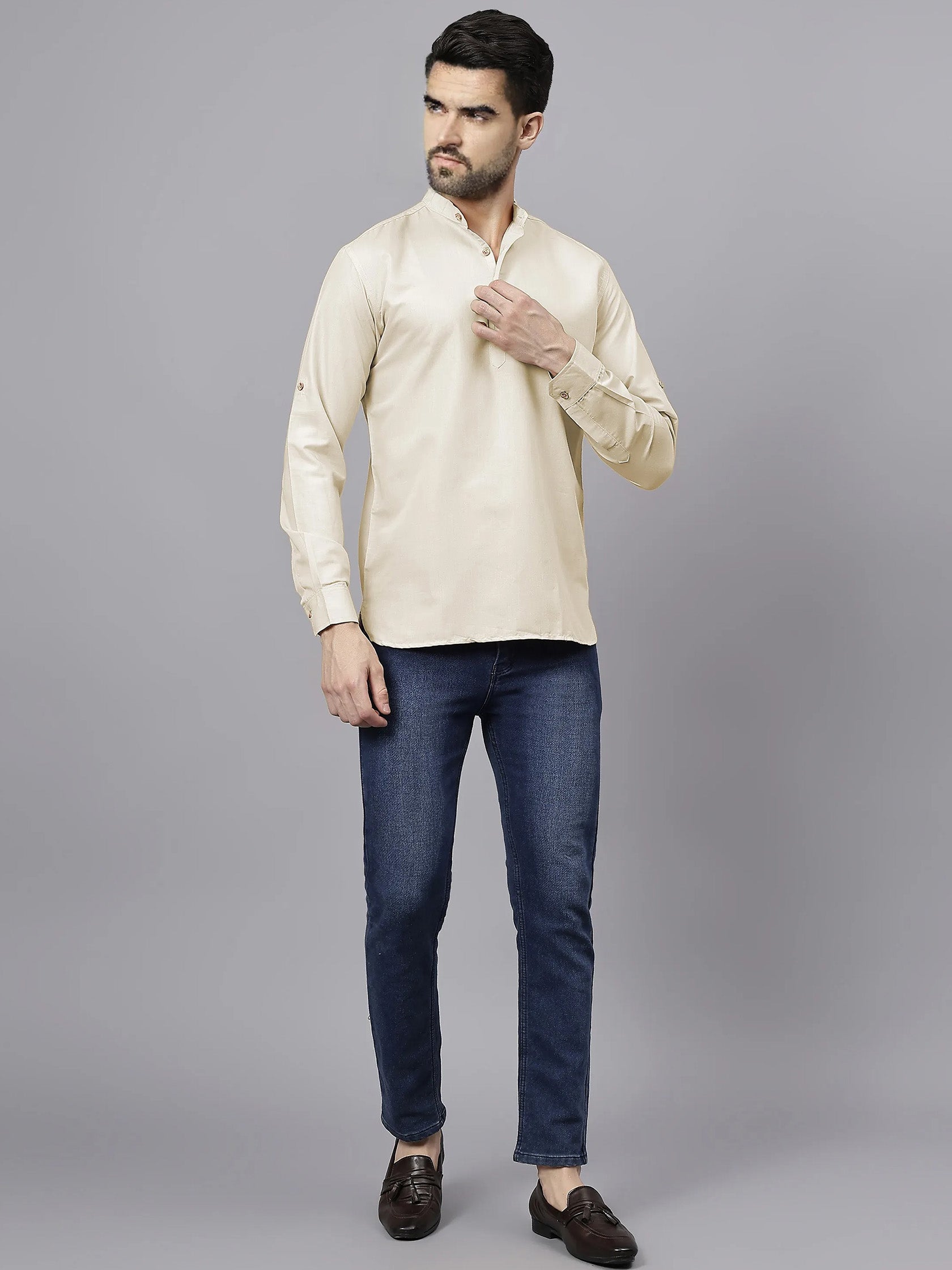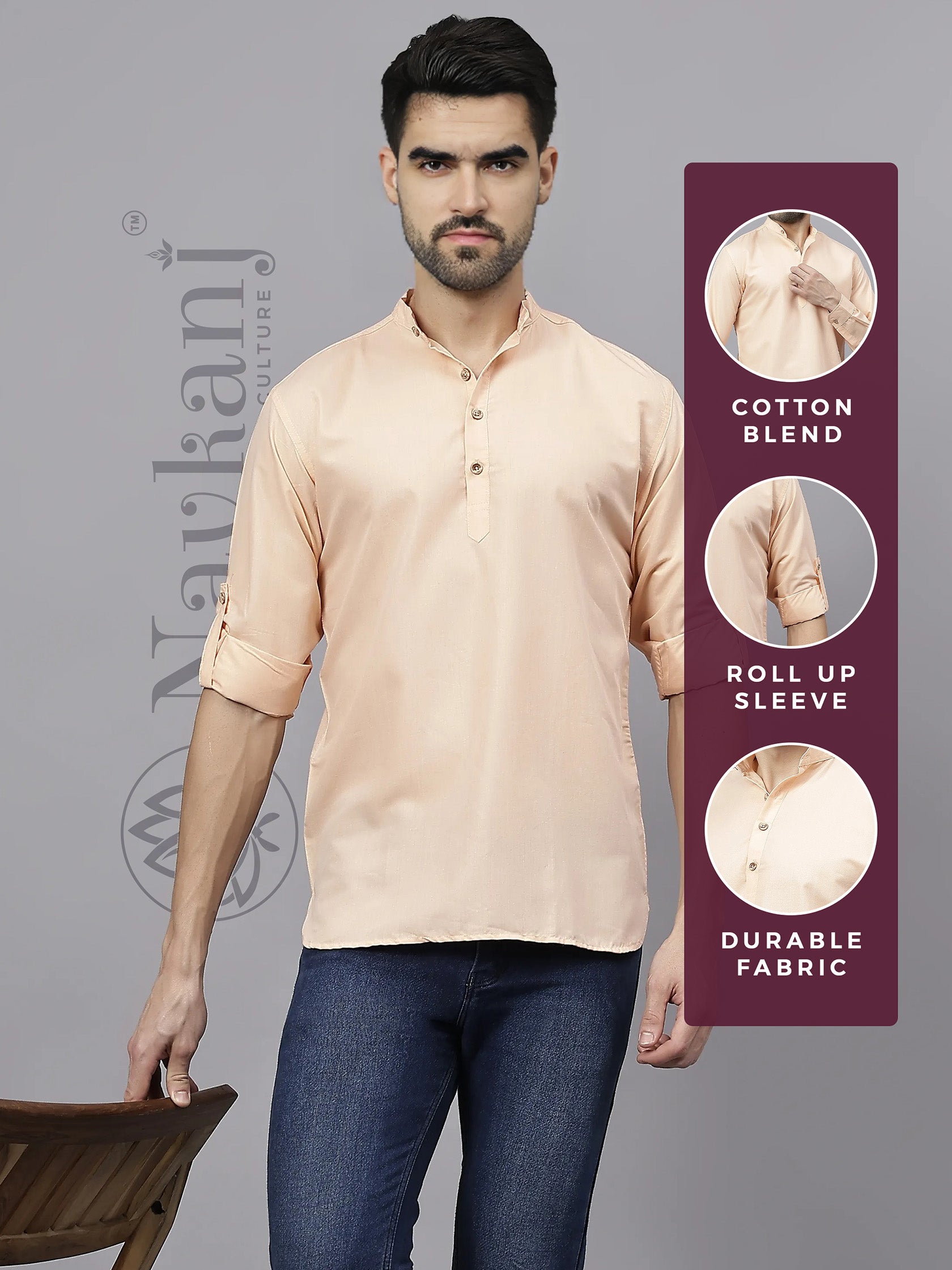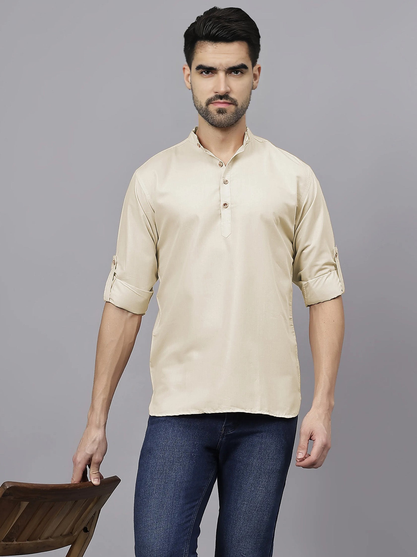 This pure cotton blend beige short kurta is perfect for men who value style and comfort. Its versatile design makes it ideal for any occasion—festivals, parties, or casual outings.