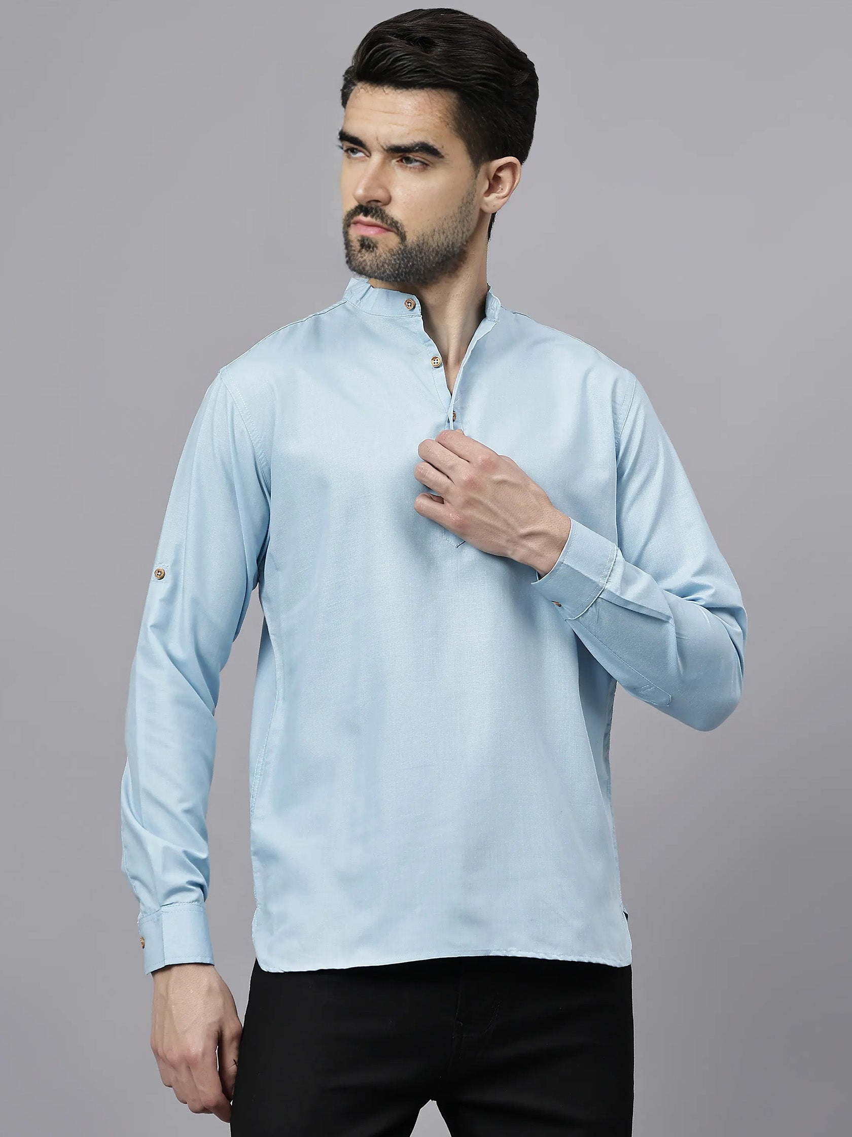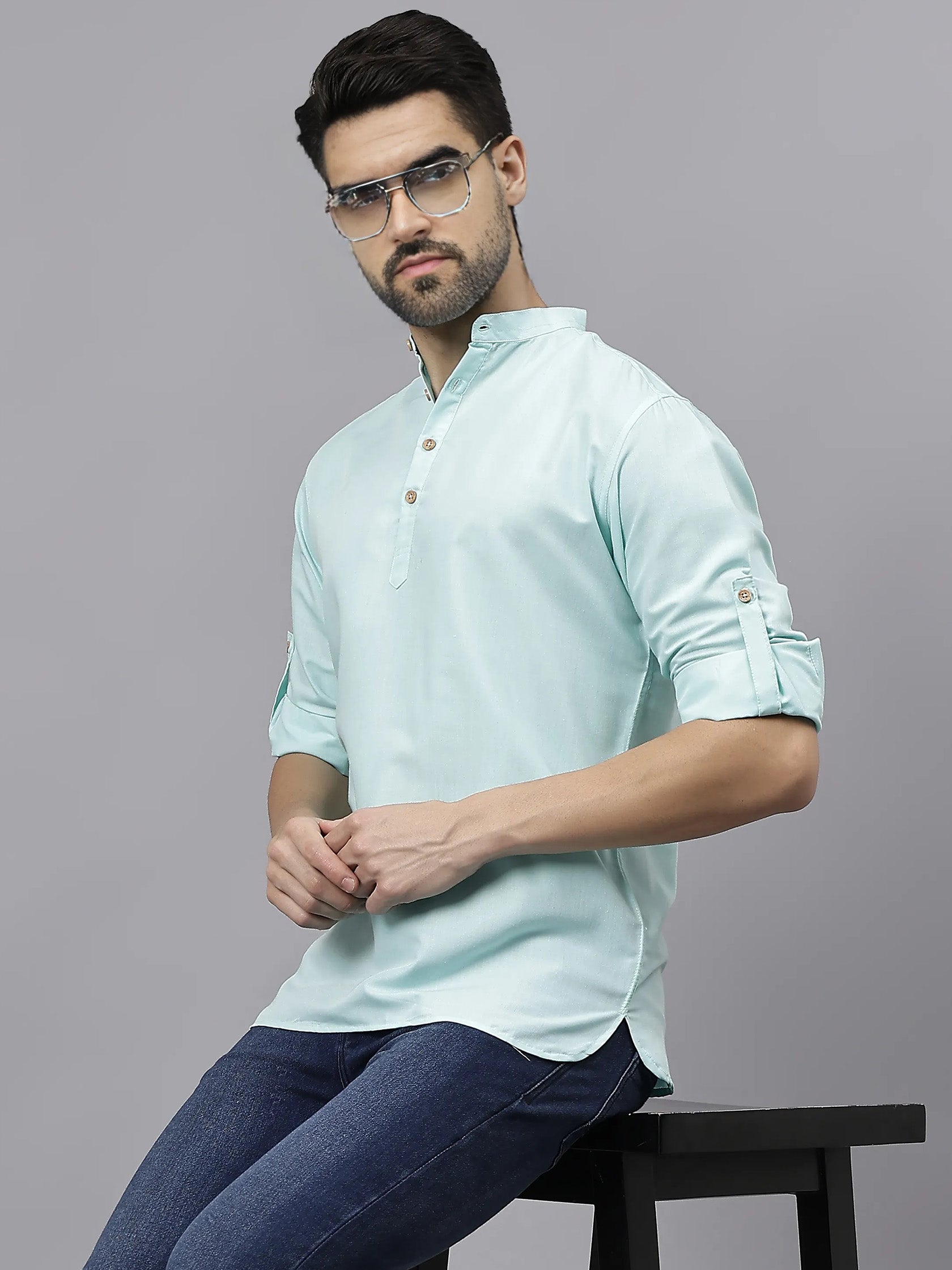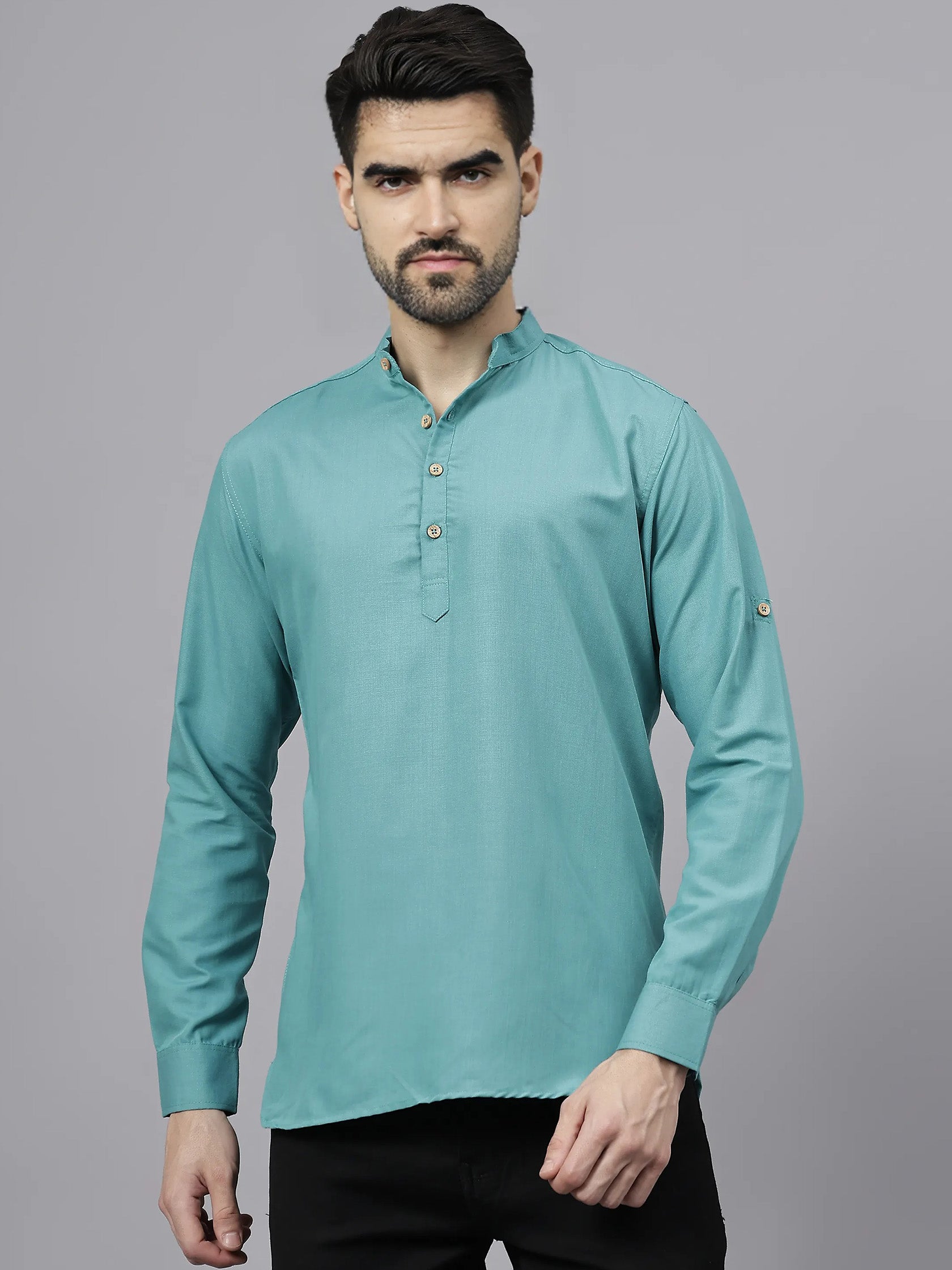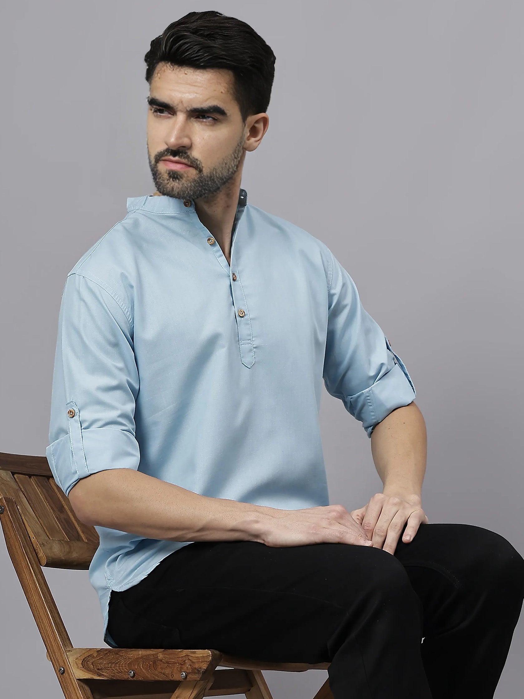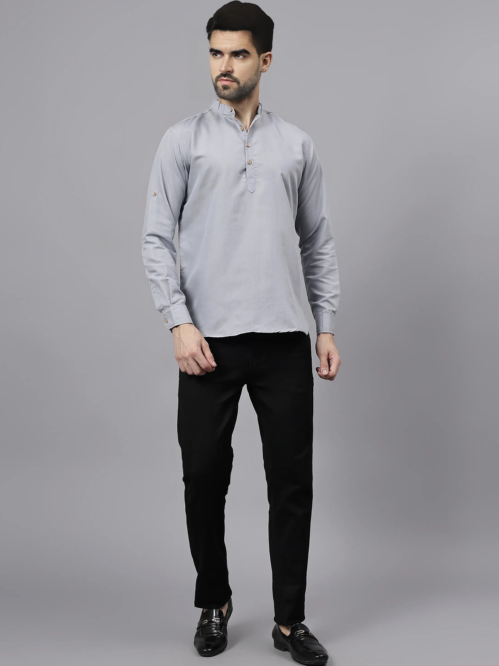 This short kurta seamlessly blends traditional elegance with modern styling, making it a wardrobe essential for every man! 👌