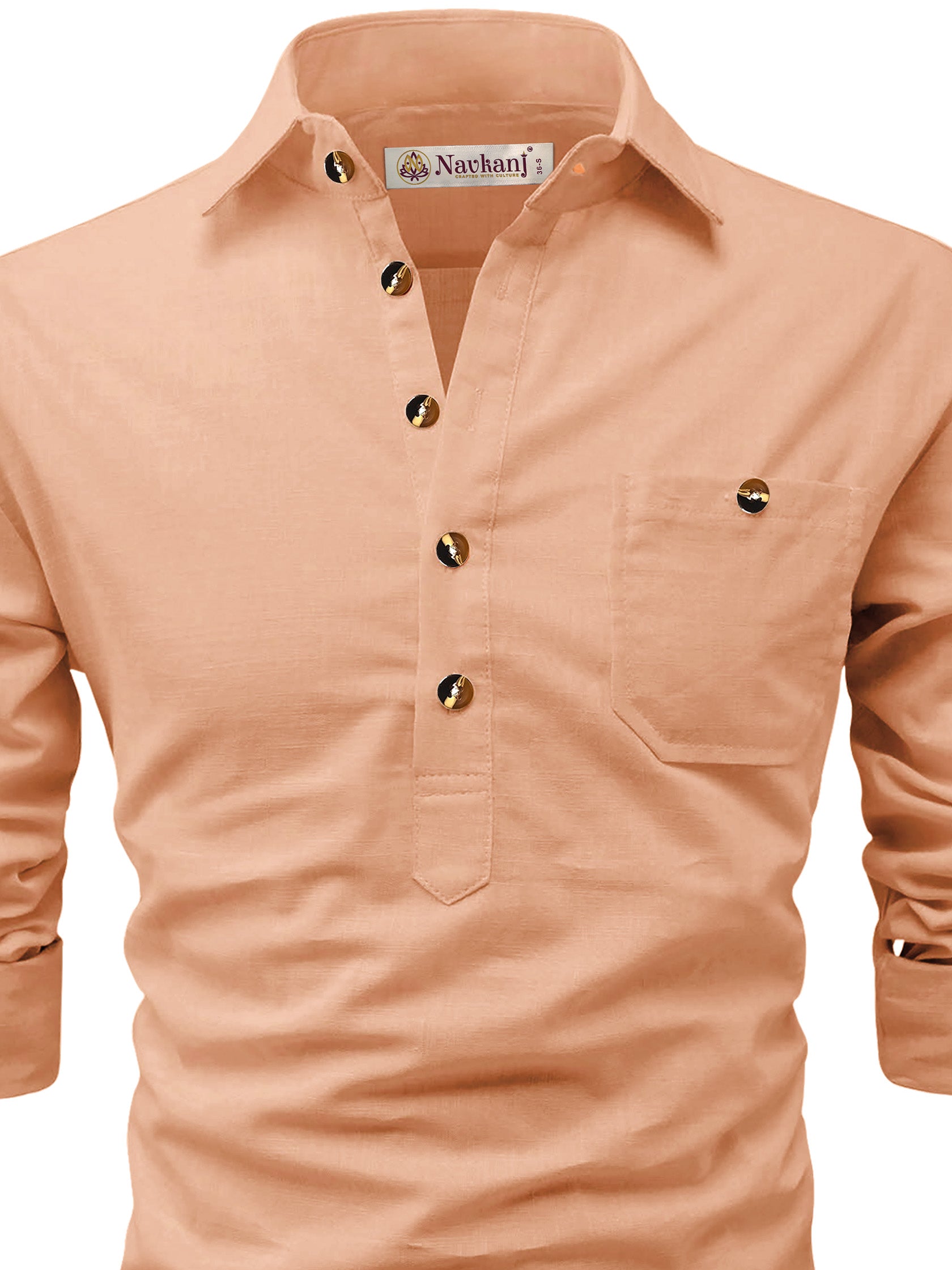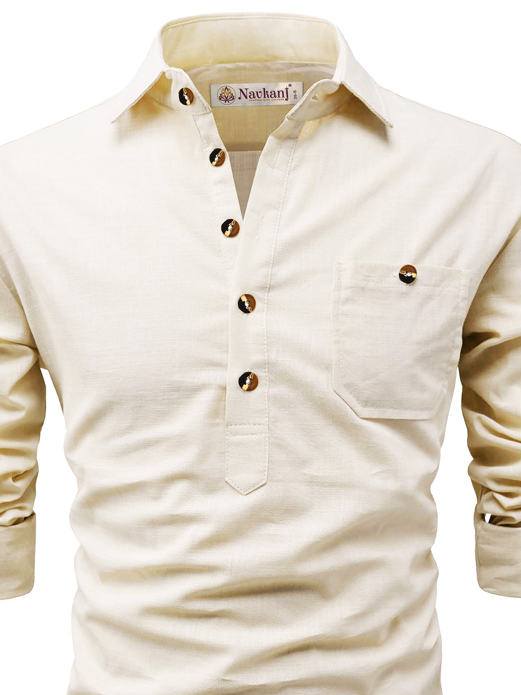This pure cotton beige short kurta is perfect for men who value style and comfort. Its versatile design makes it ideal for any occasion—festivals, parties, or casual outings.