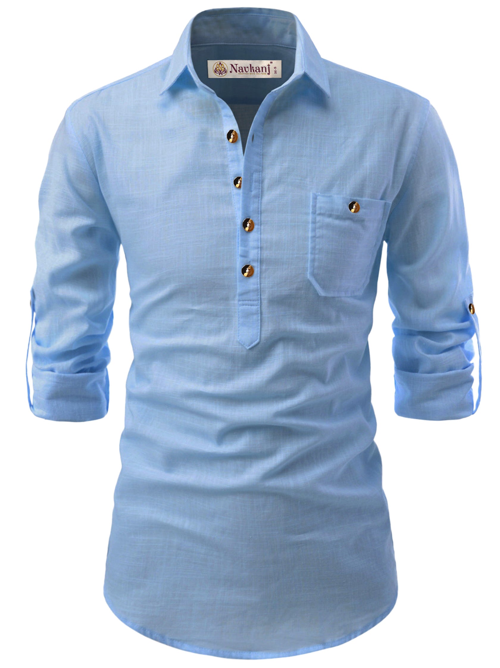 This short kurta seamlessly blends traditional elegance with modern styling, making it a wardrobe essential for every man! 👌