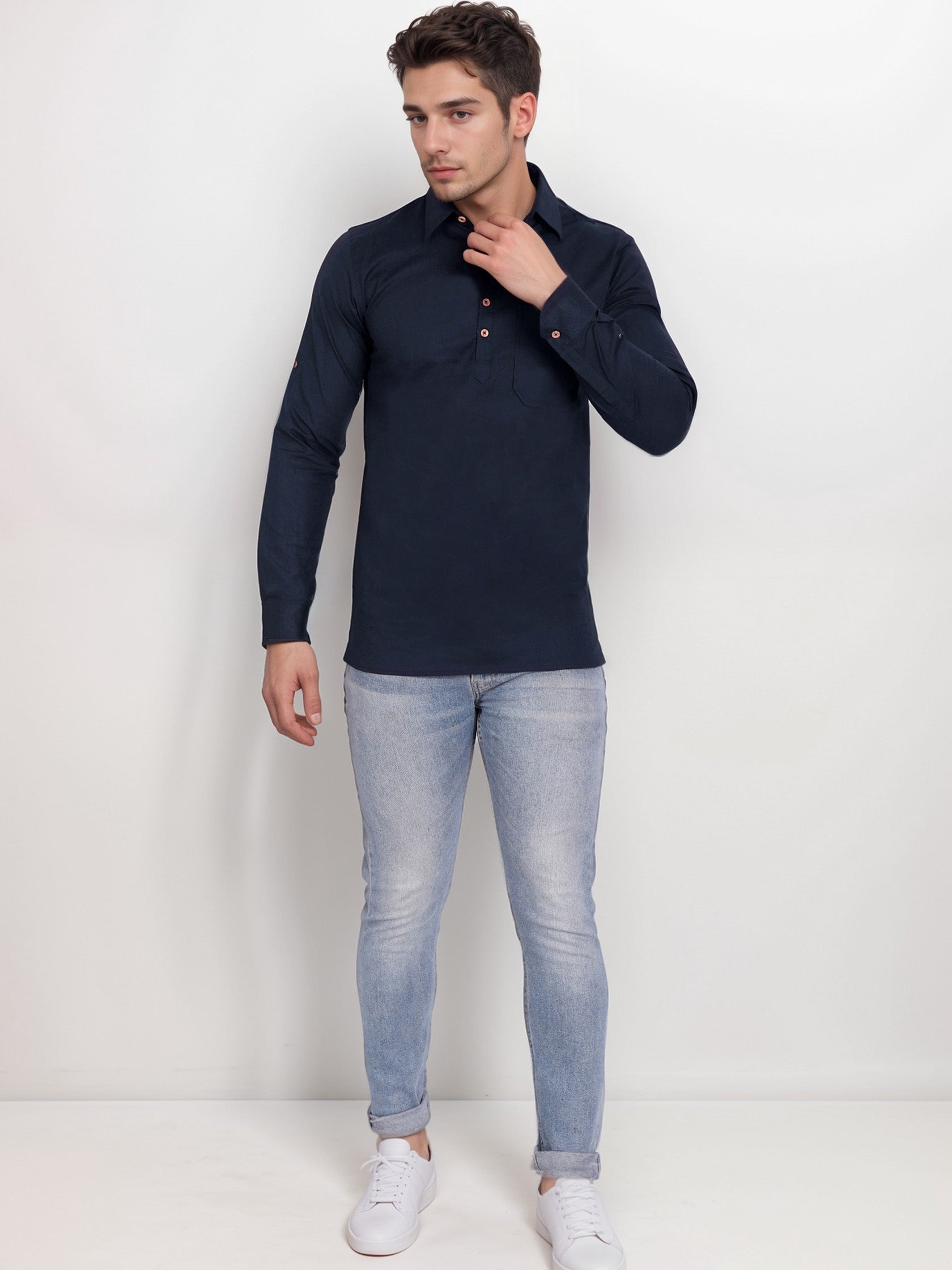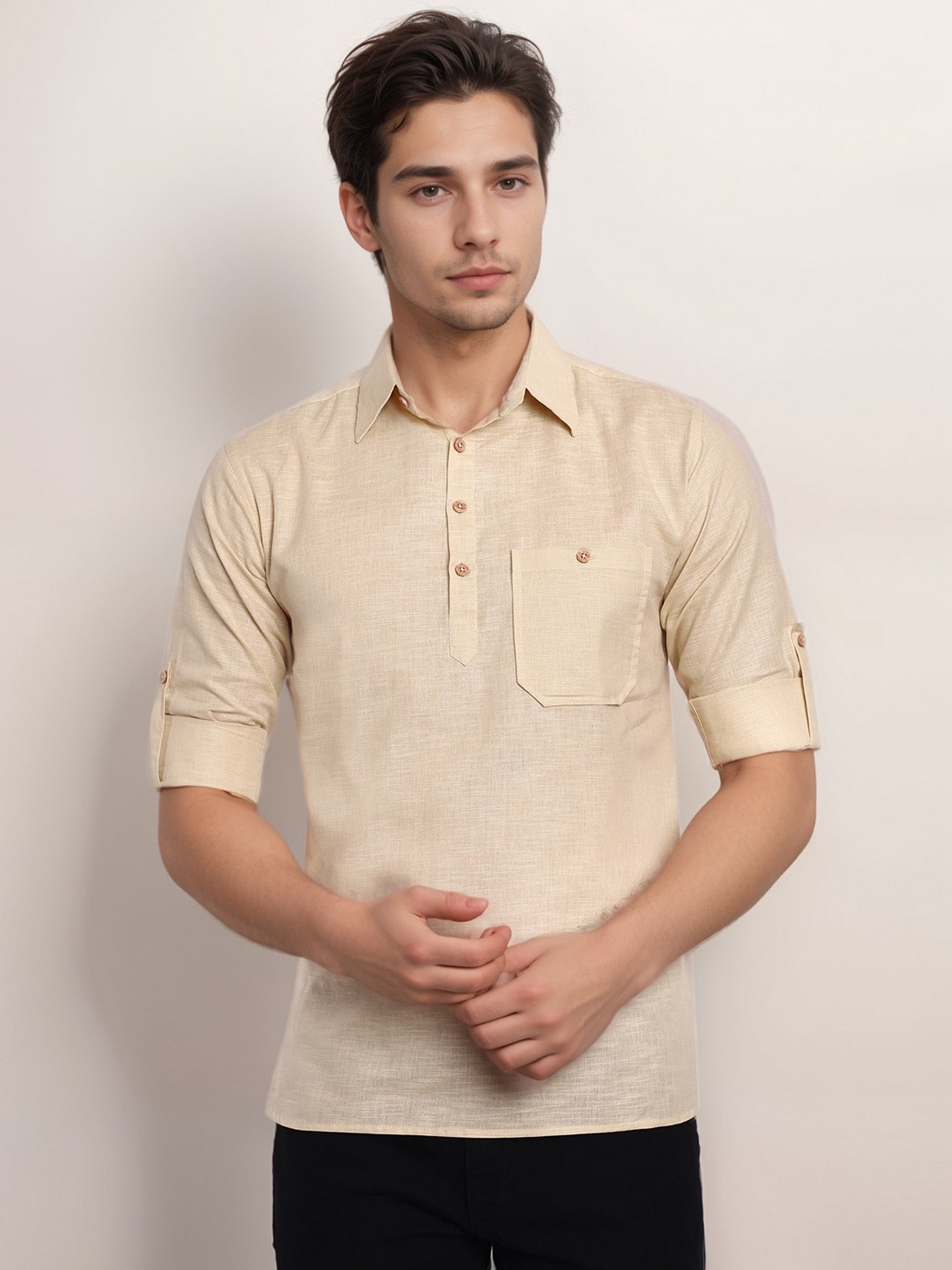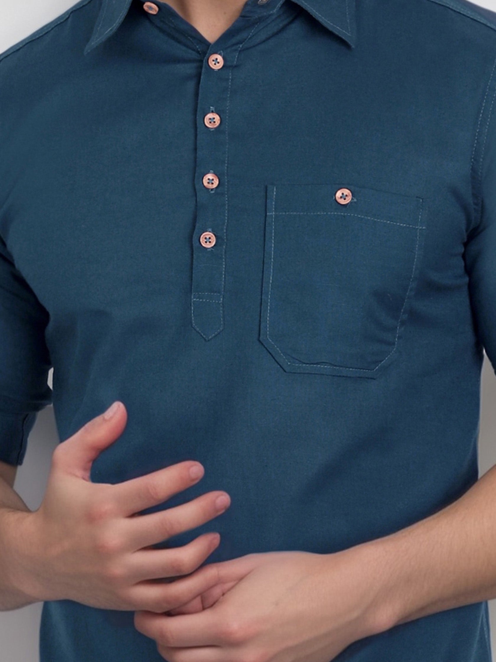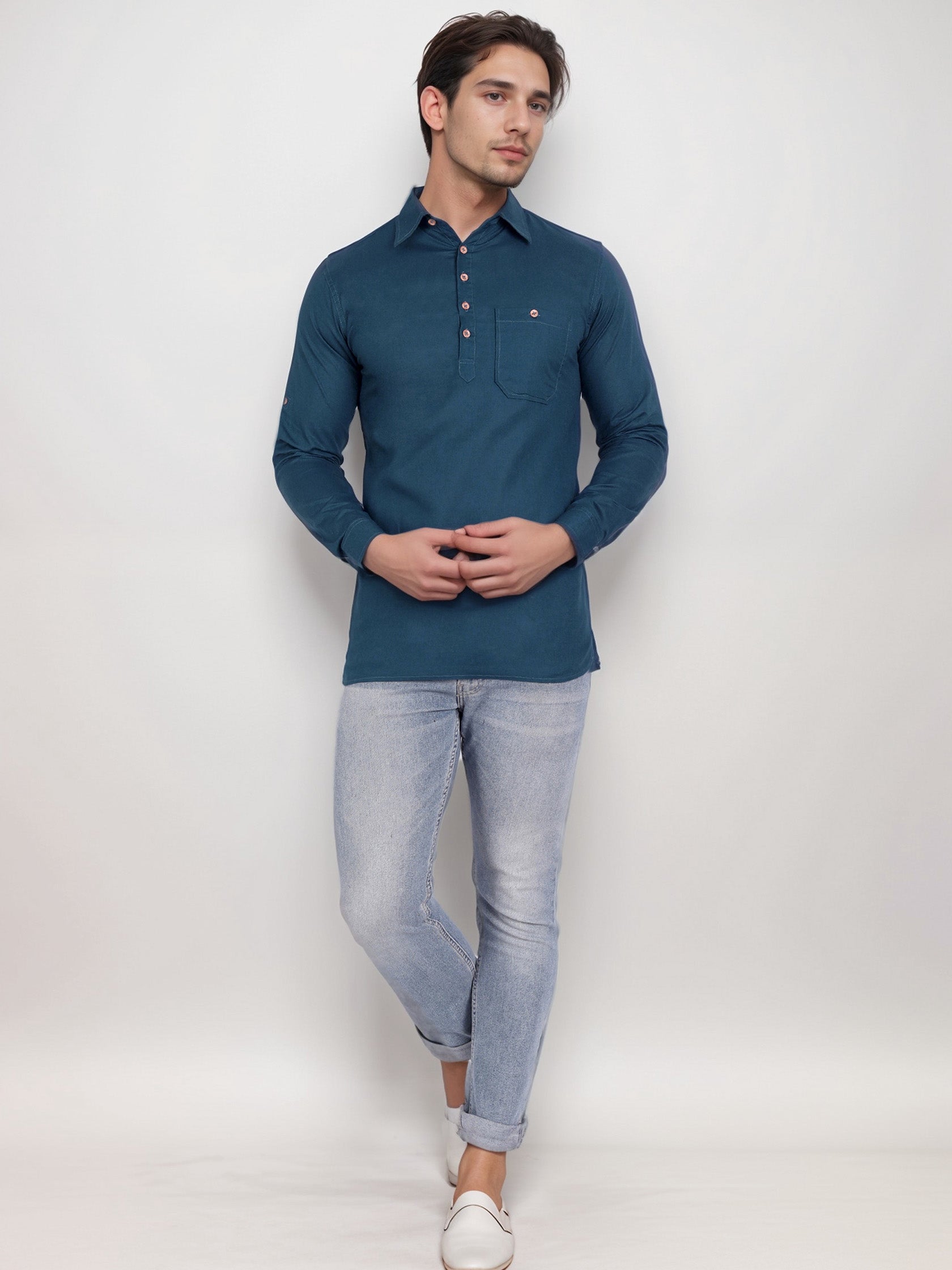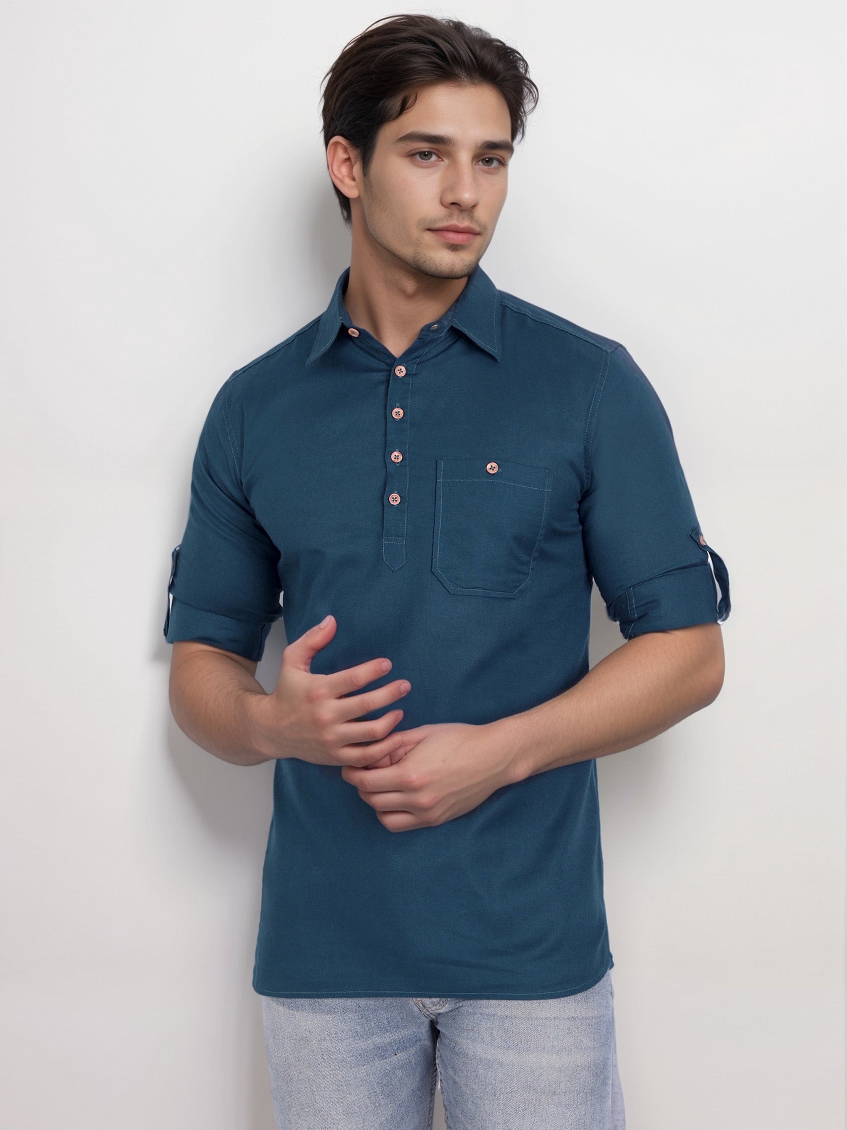 This short kurta seamlessly blends traditional elegance with modern styling, making it a wardrobe essential for every man! 👌