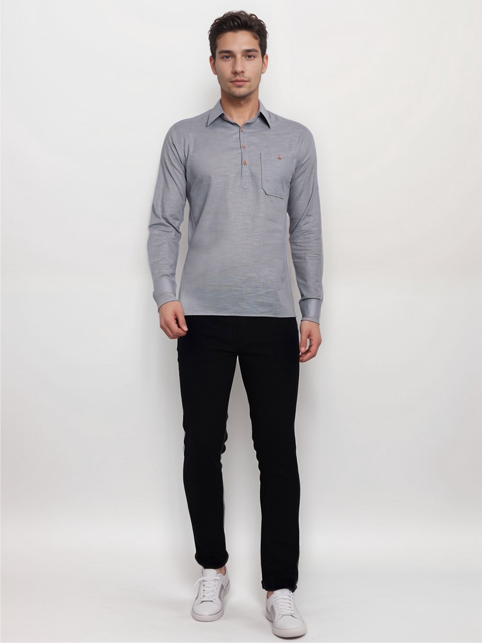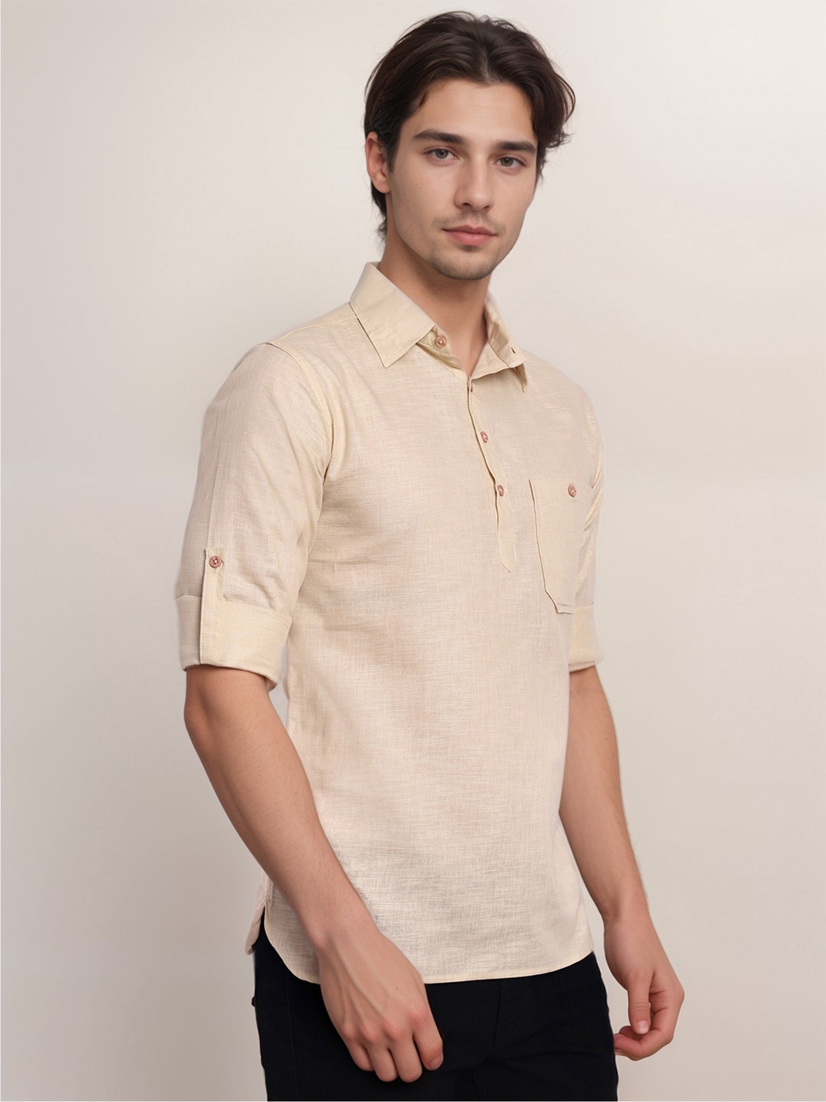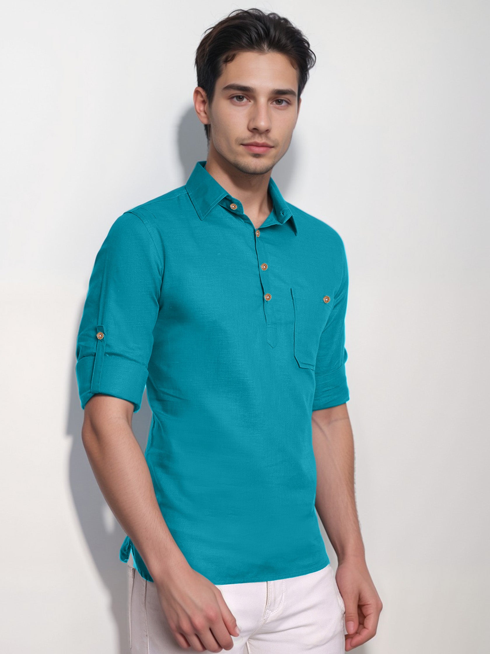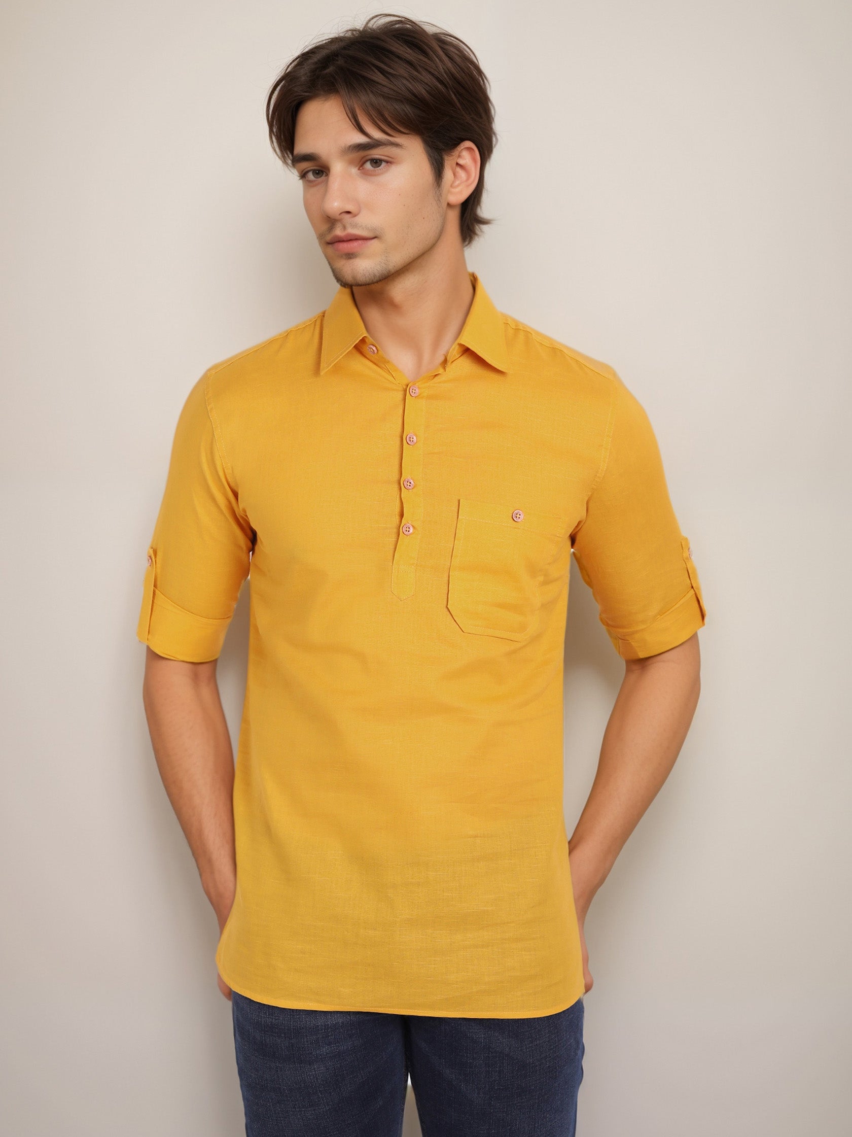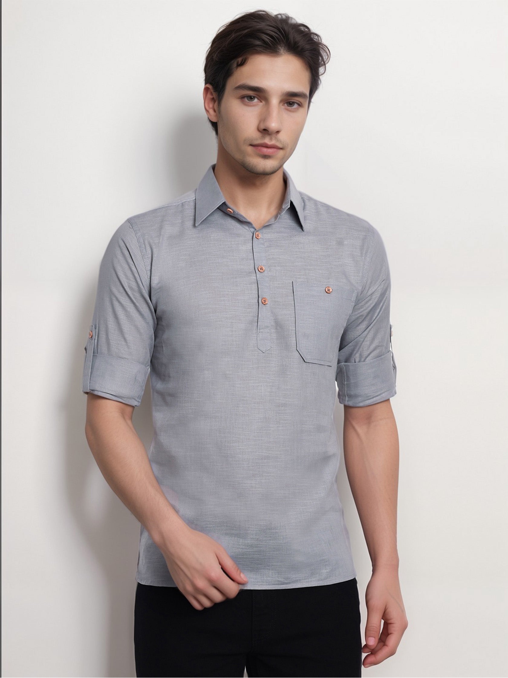This short kurta seamlessly blends traditional elegance with modern styling, making it a wardrobe essential for every man! 👌