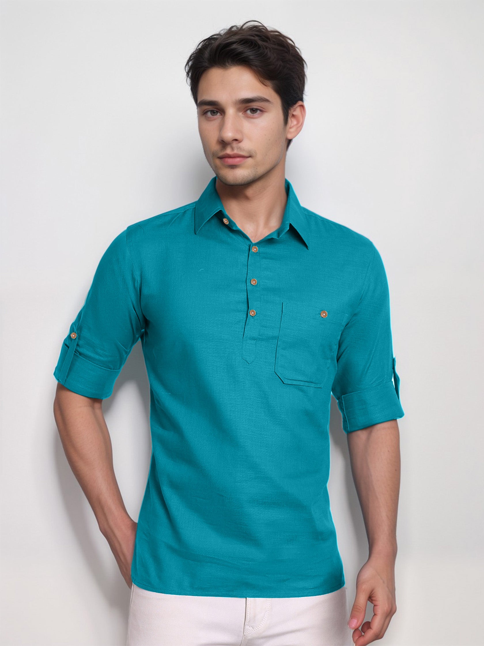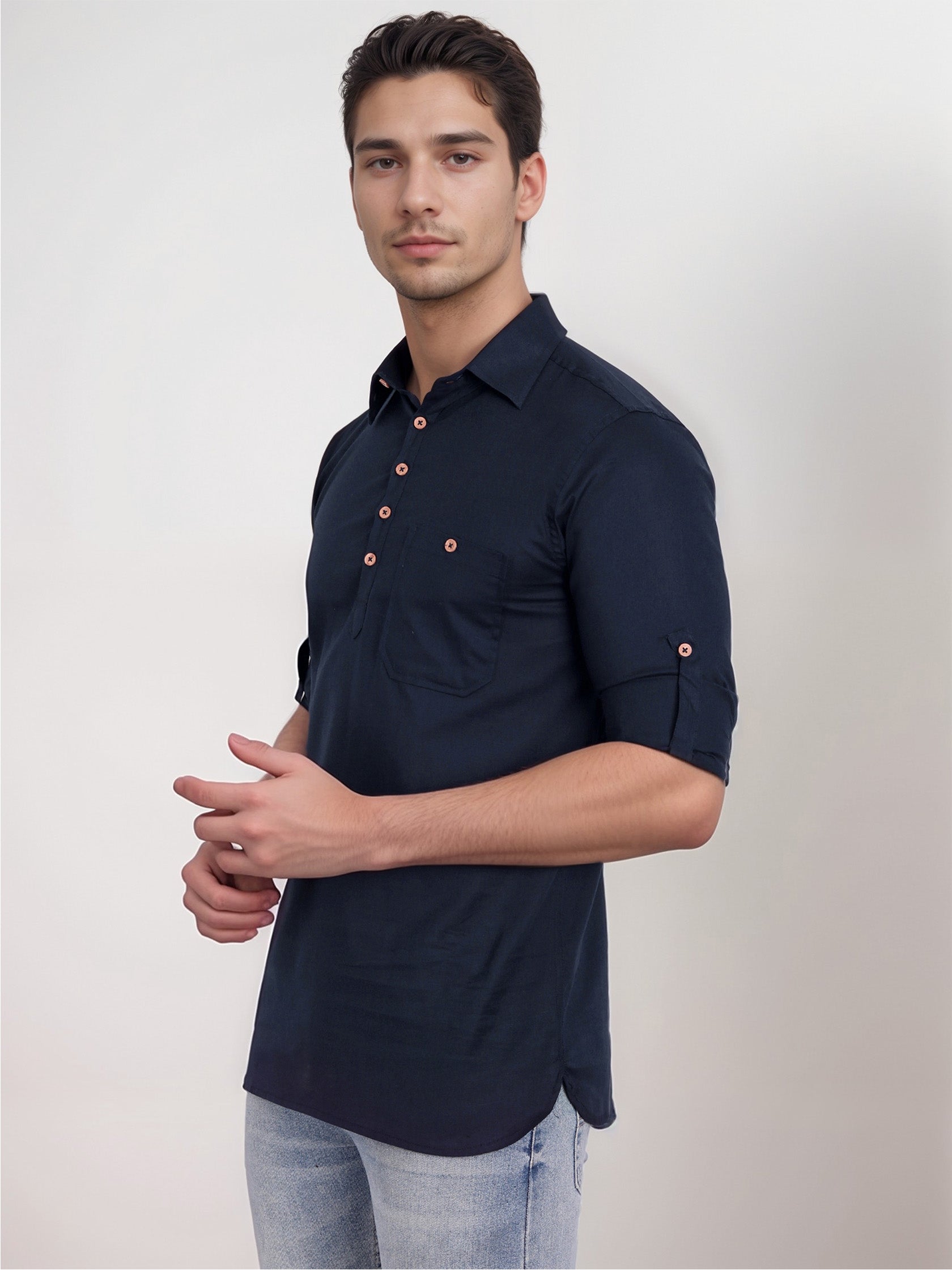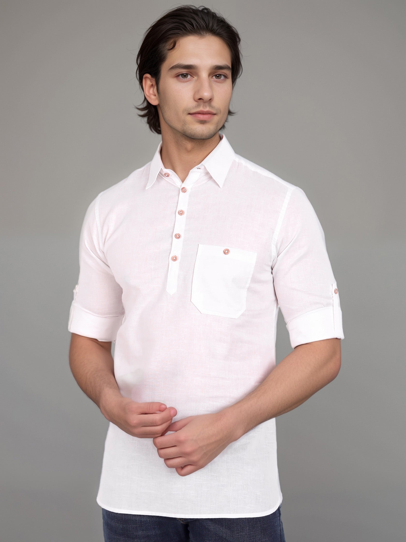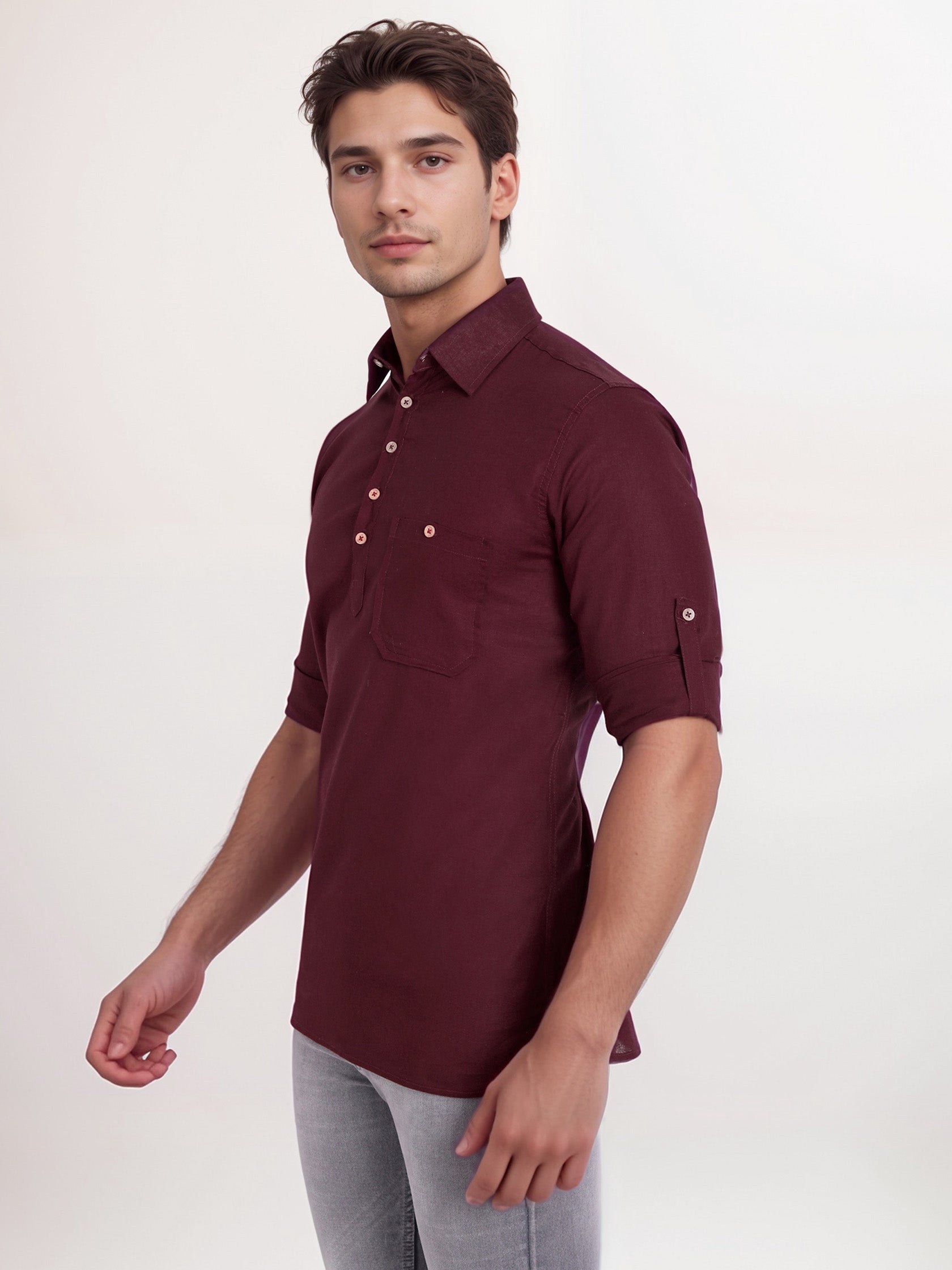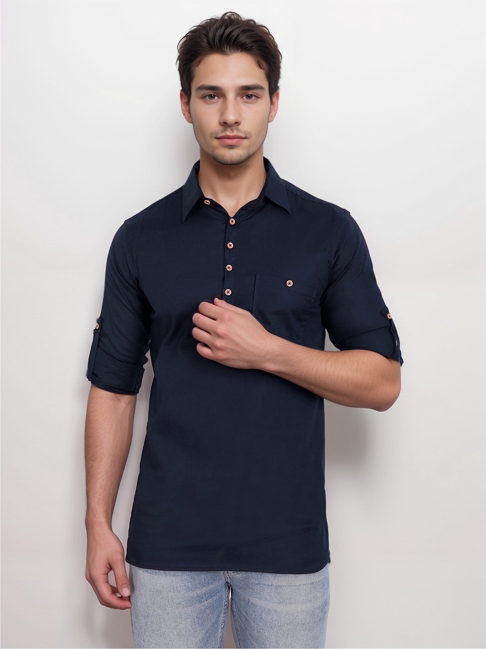 This short kurta seamlessly blends traditional elegance with modern styling, making it a wardrobe essential for every man! 👌