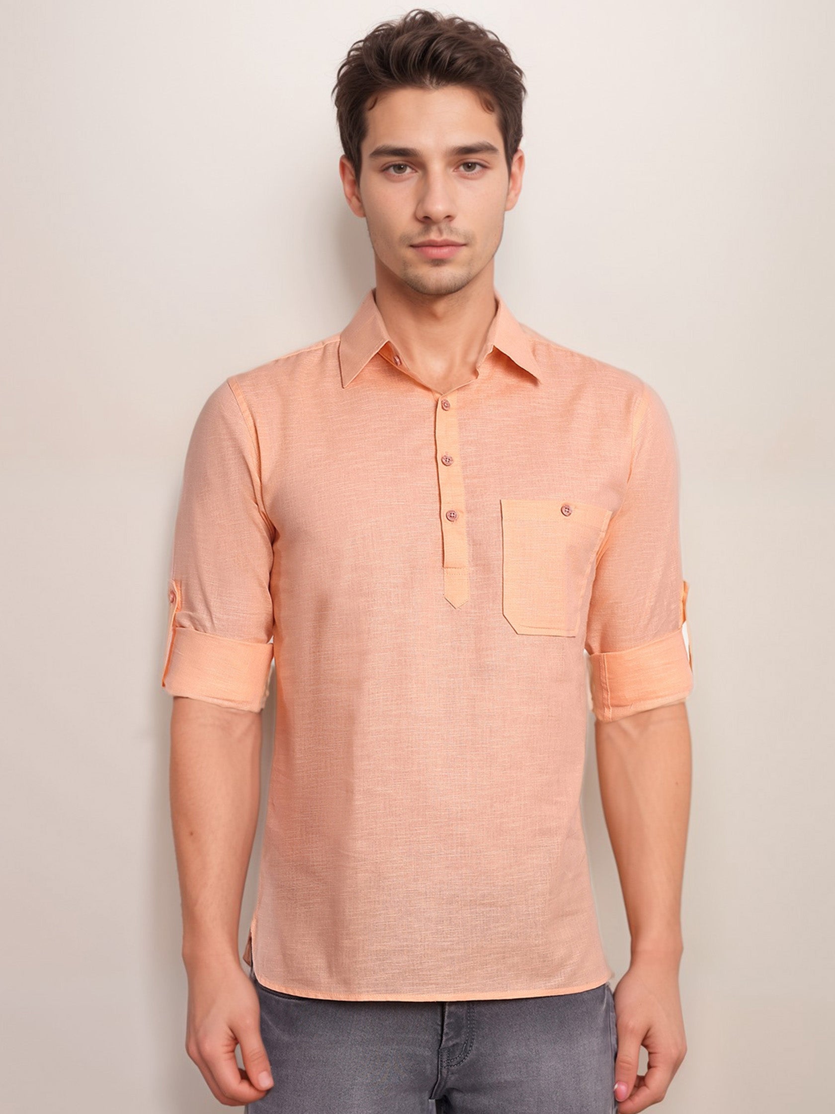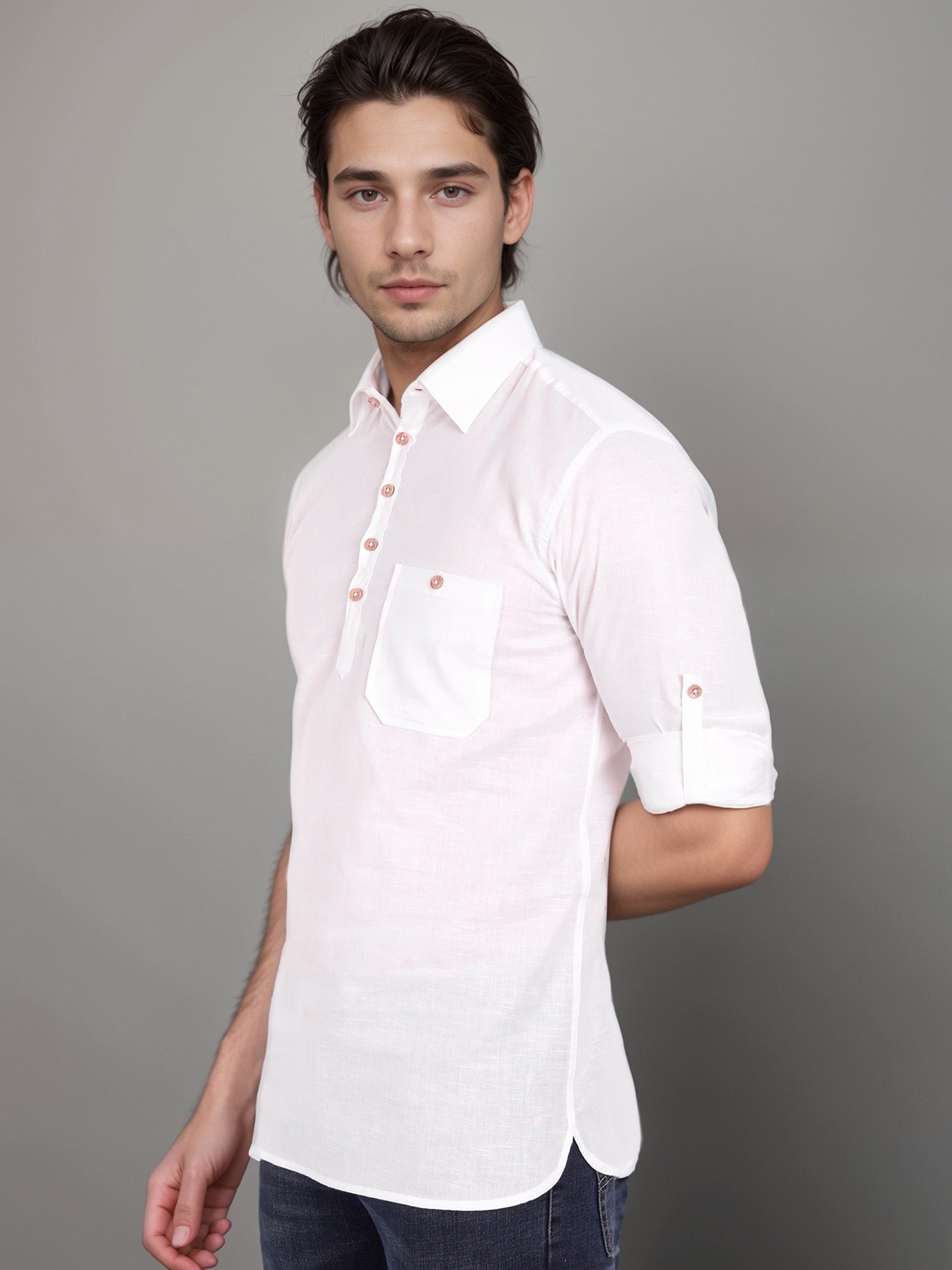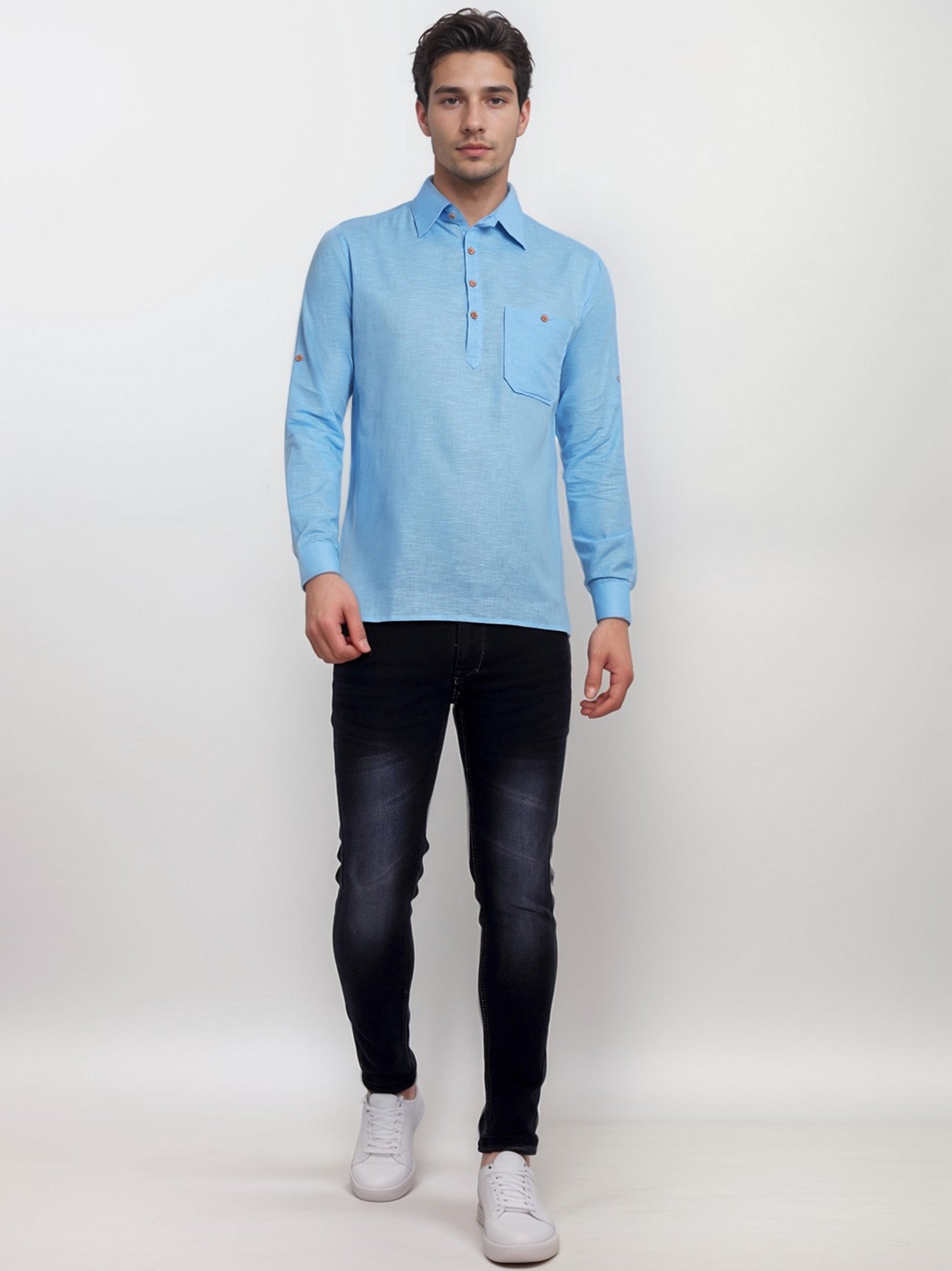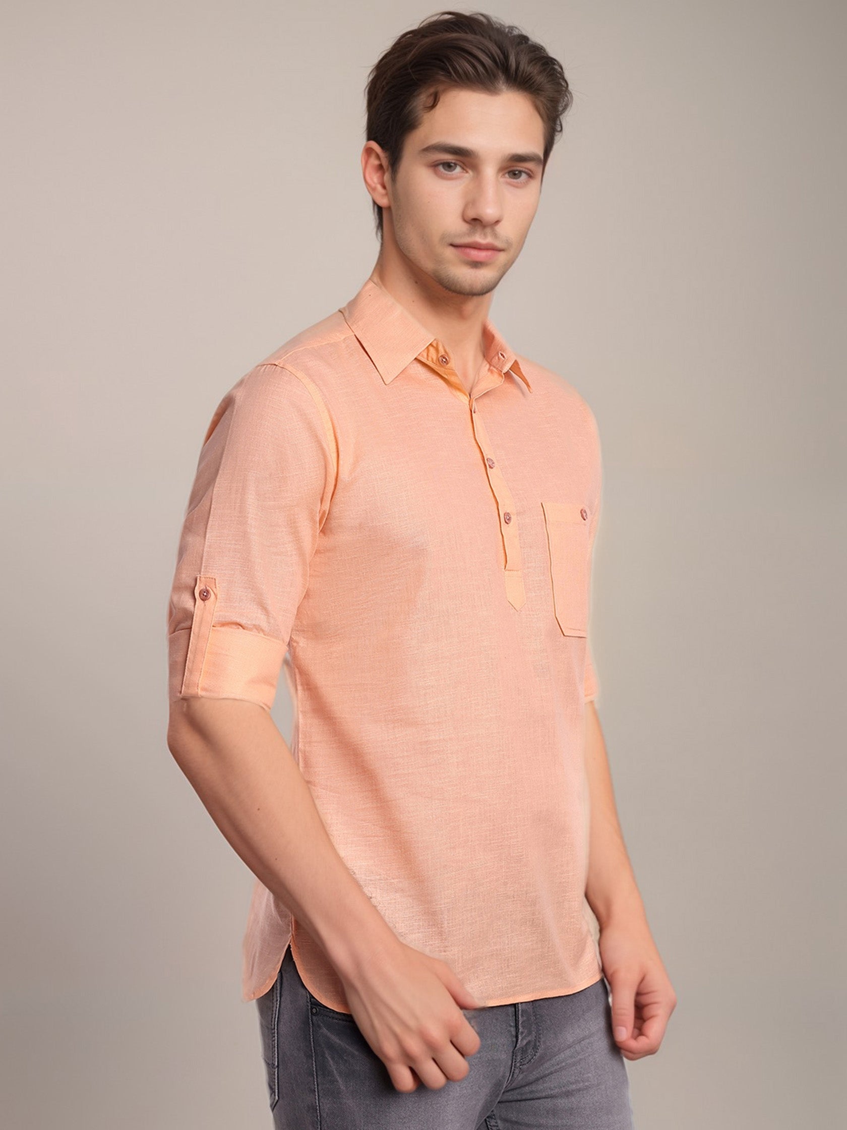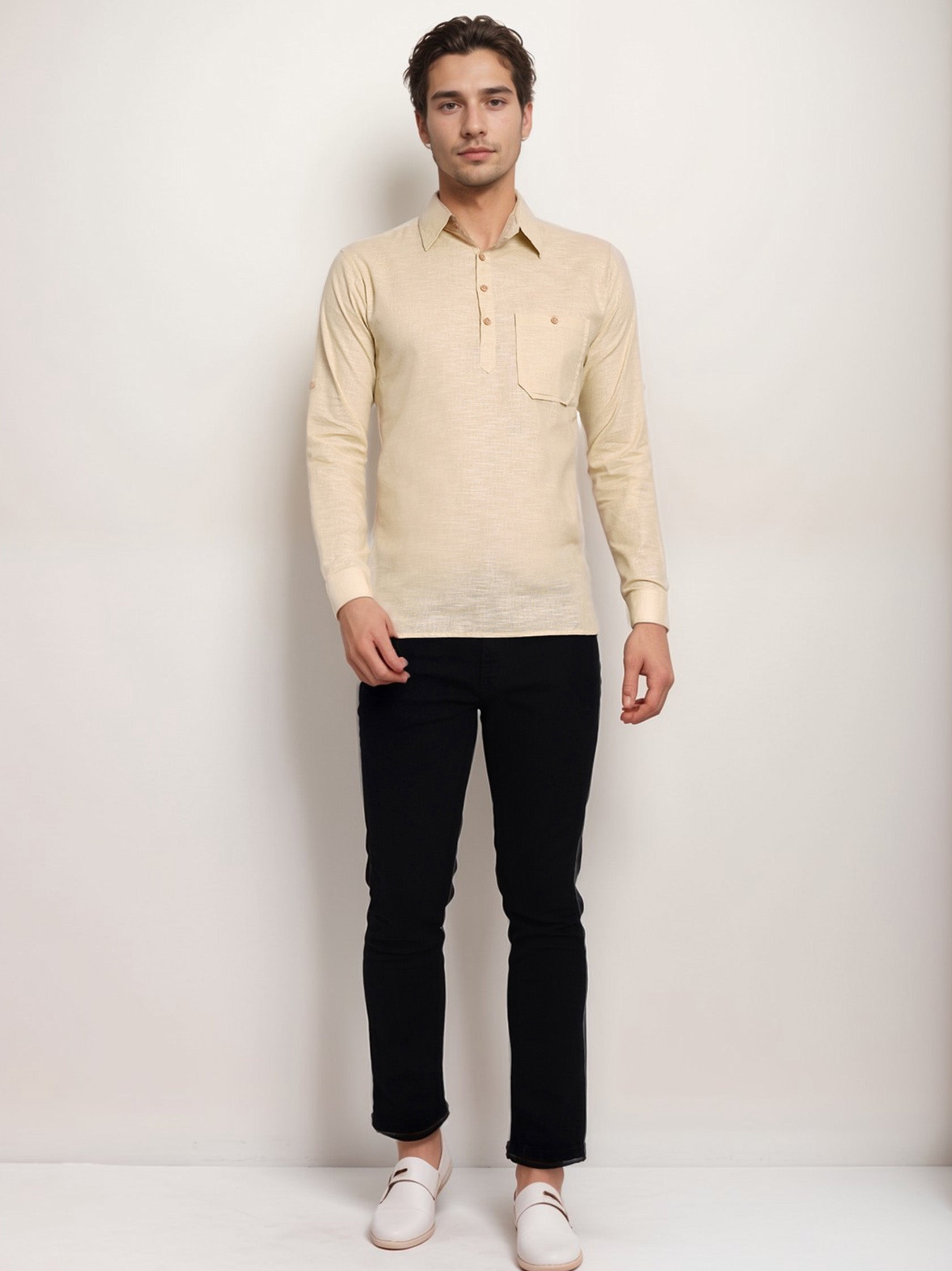 This short kurta seamlessly blends traditional elegance with modern styling, making it a wardrobe essential for every man! 👌