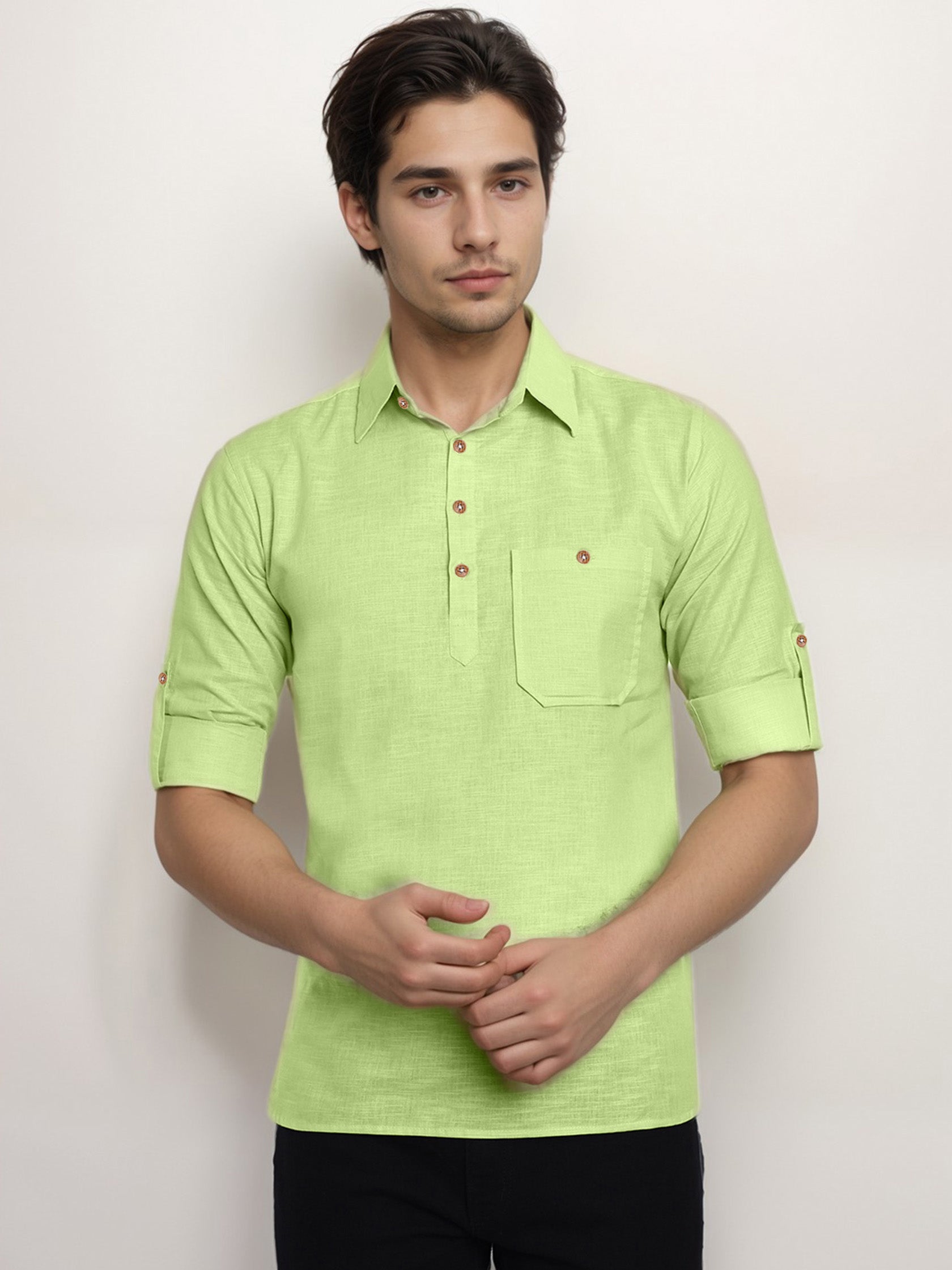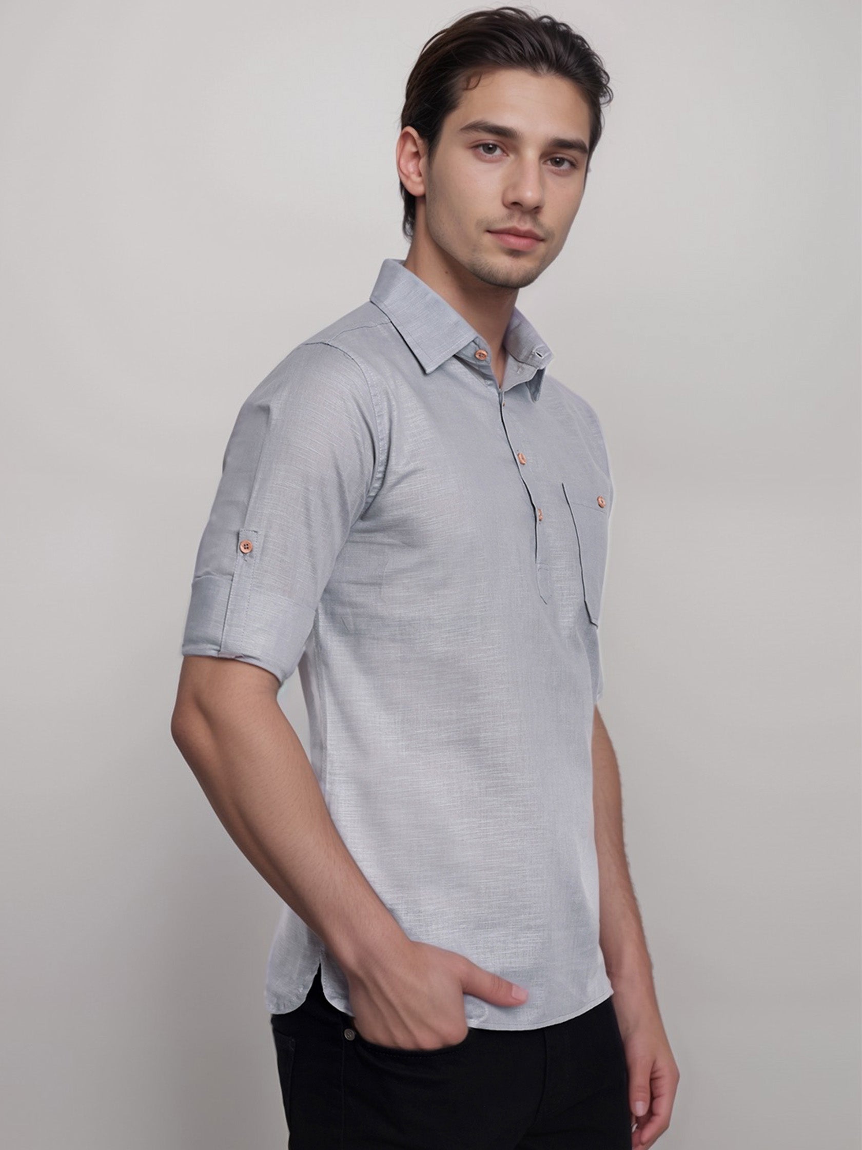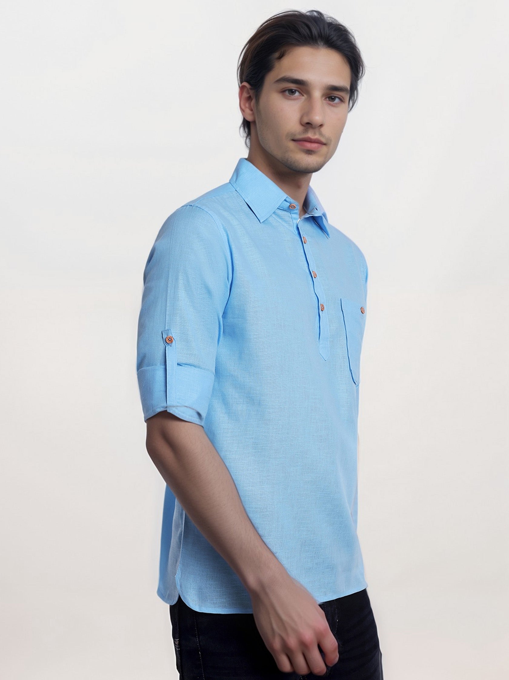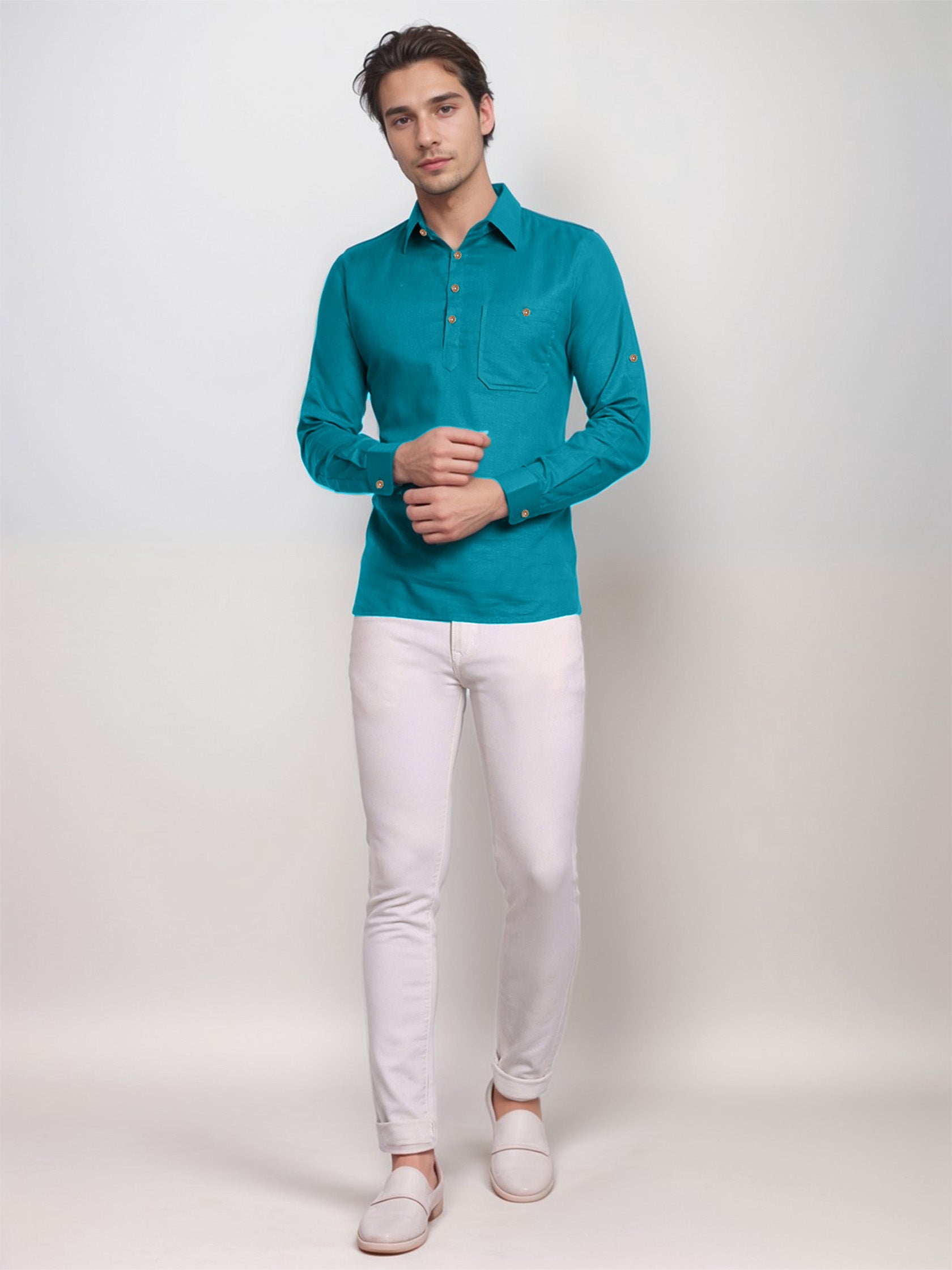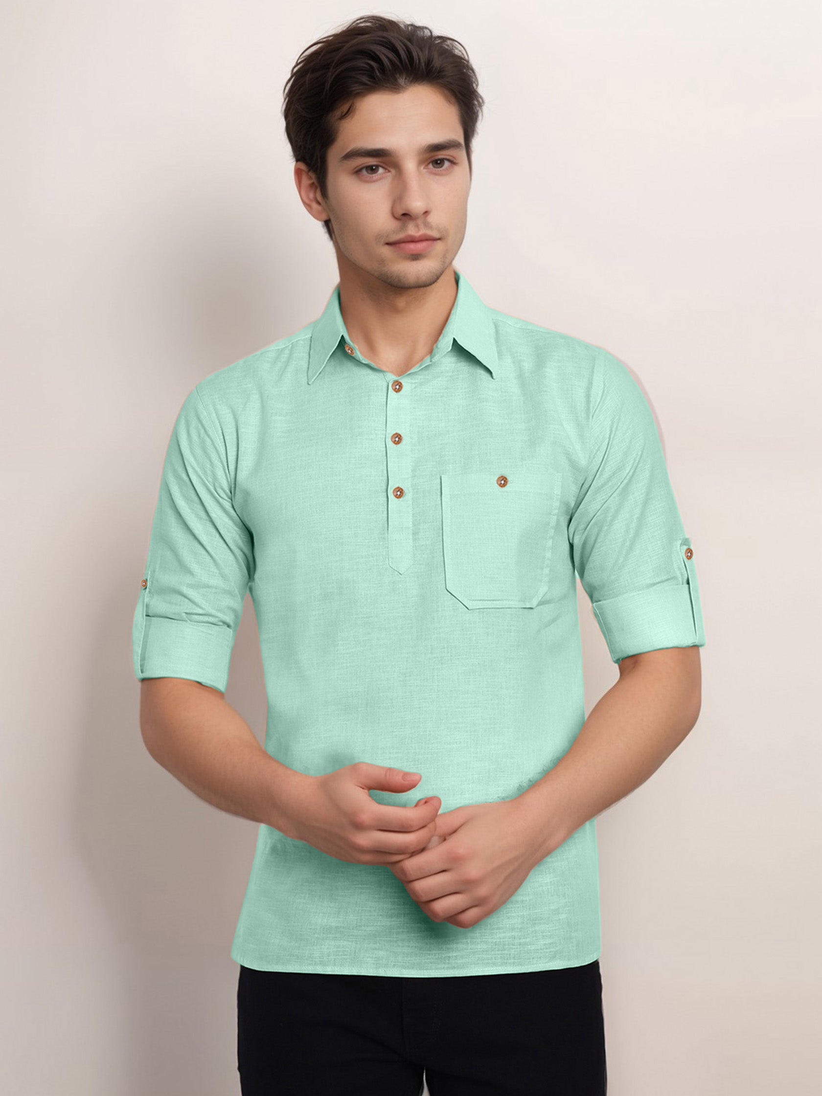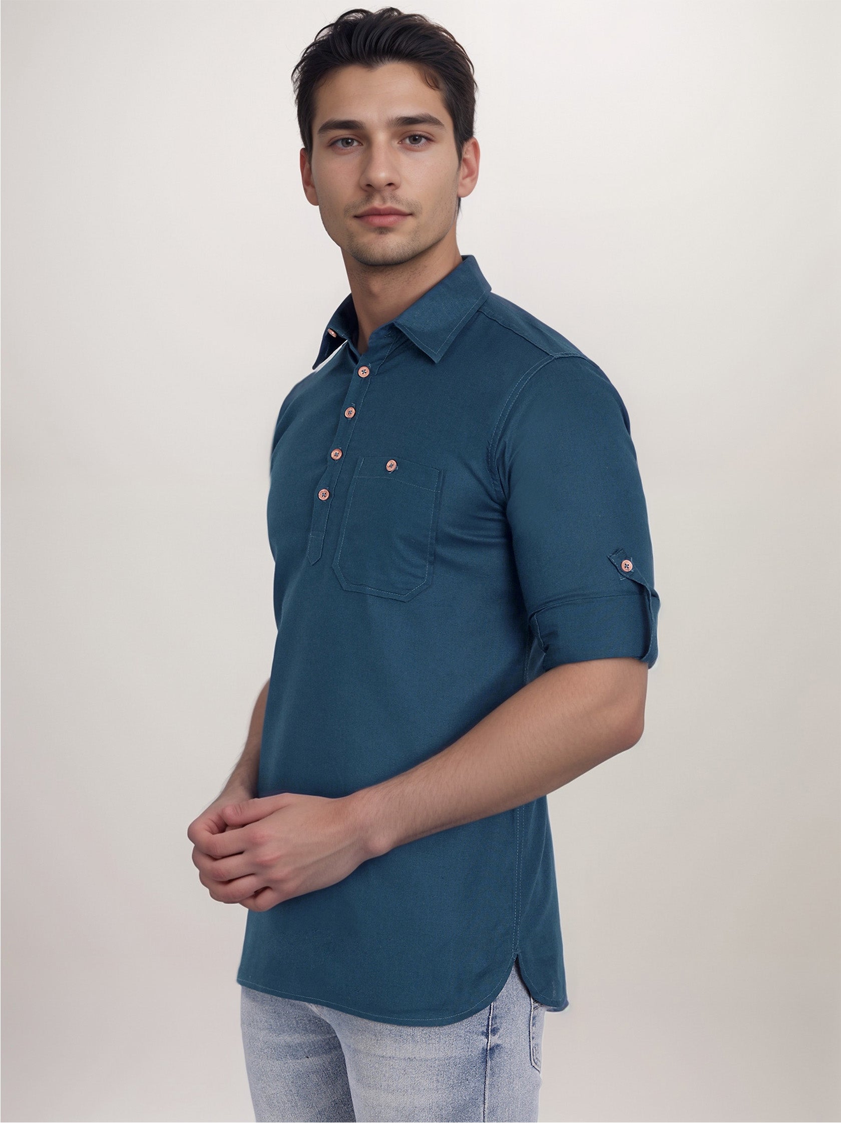 This short kurta seamlessly blends traditional elegance with modern styling, making it a wardrobe essential for every man! 👌