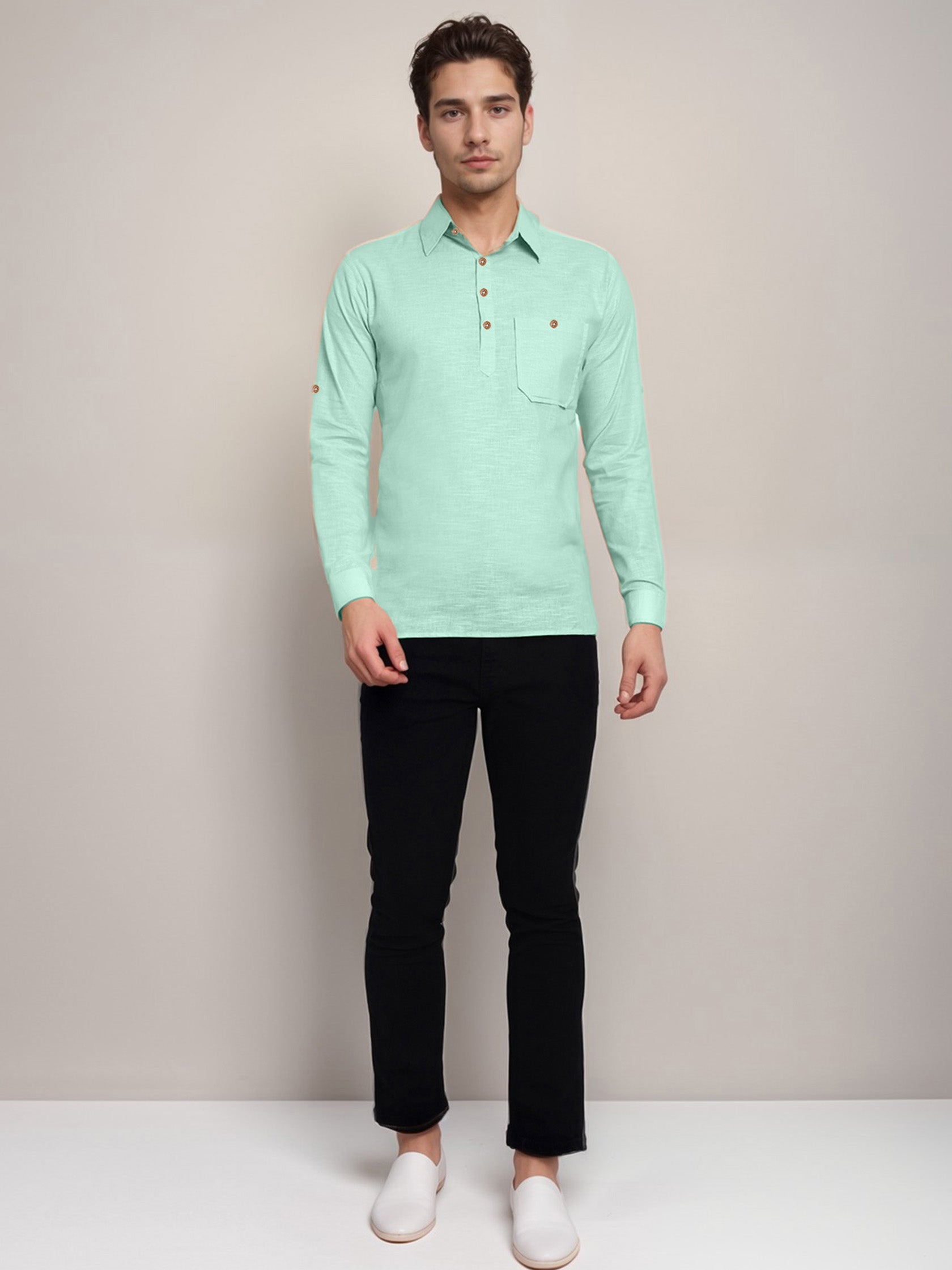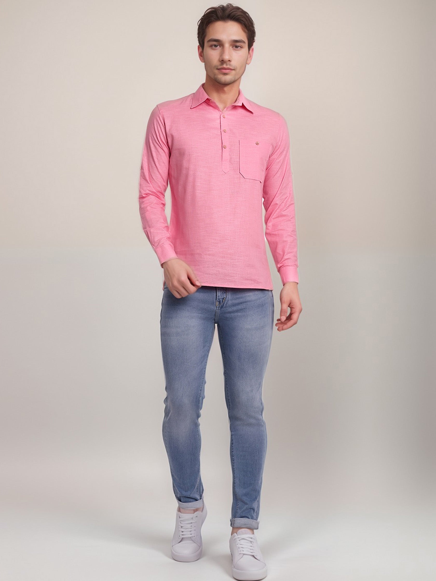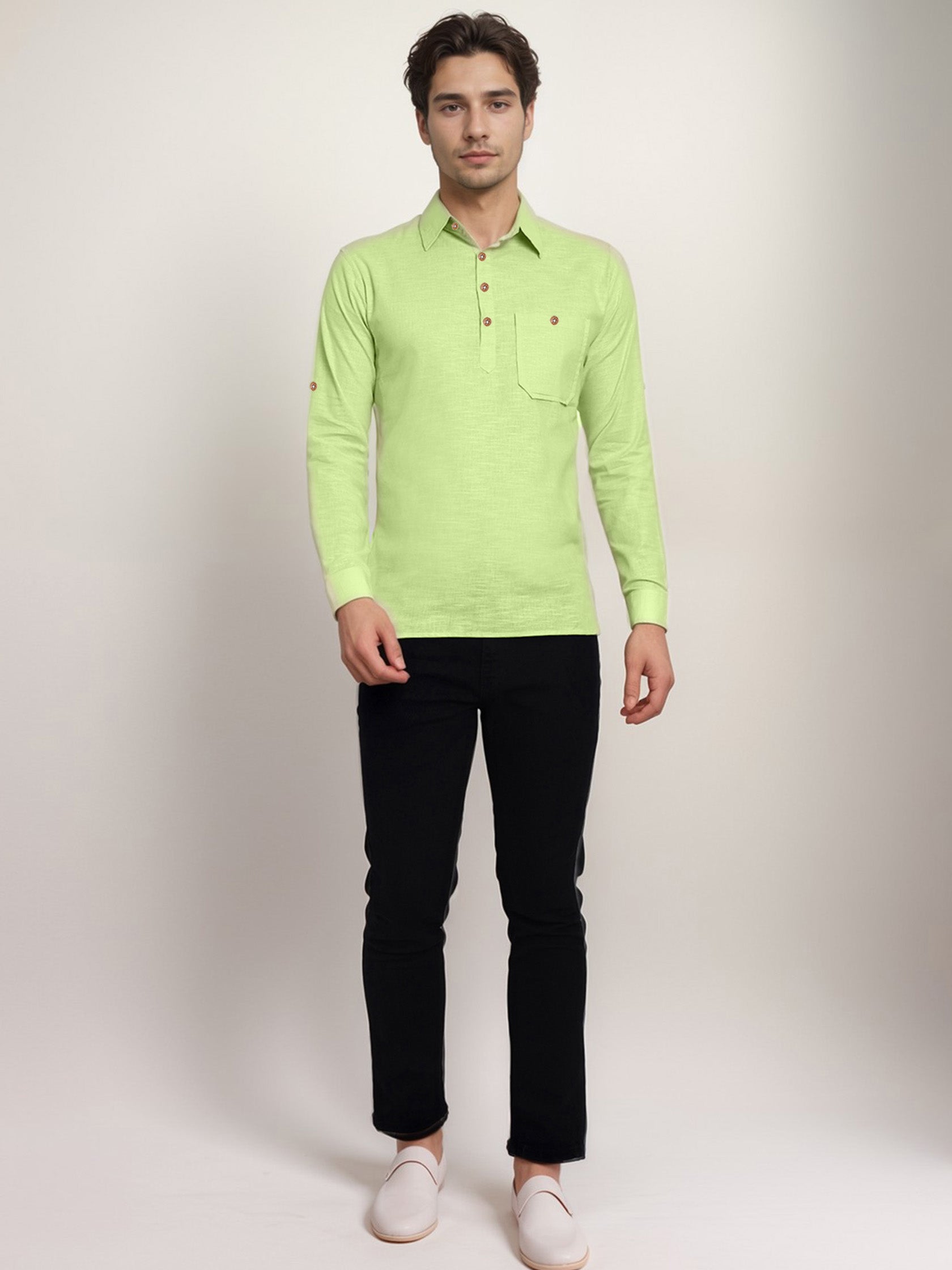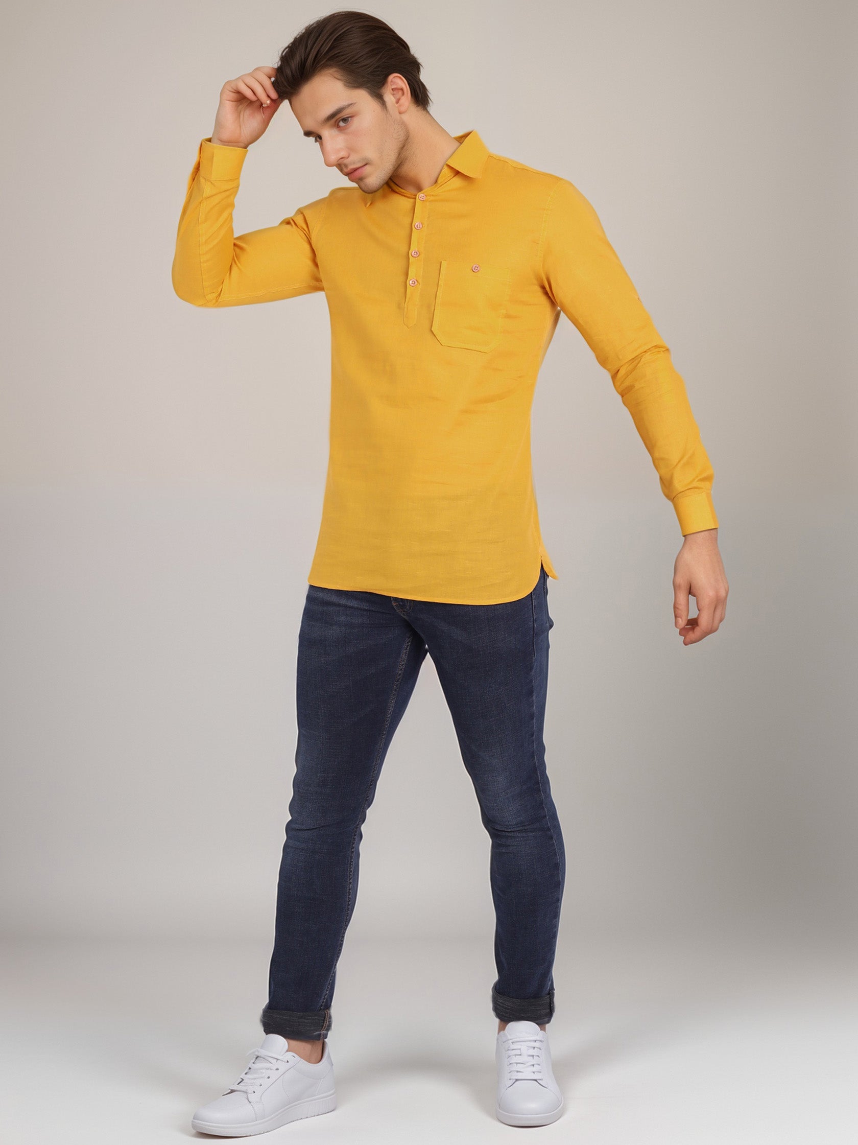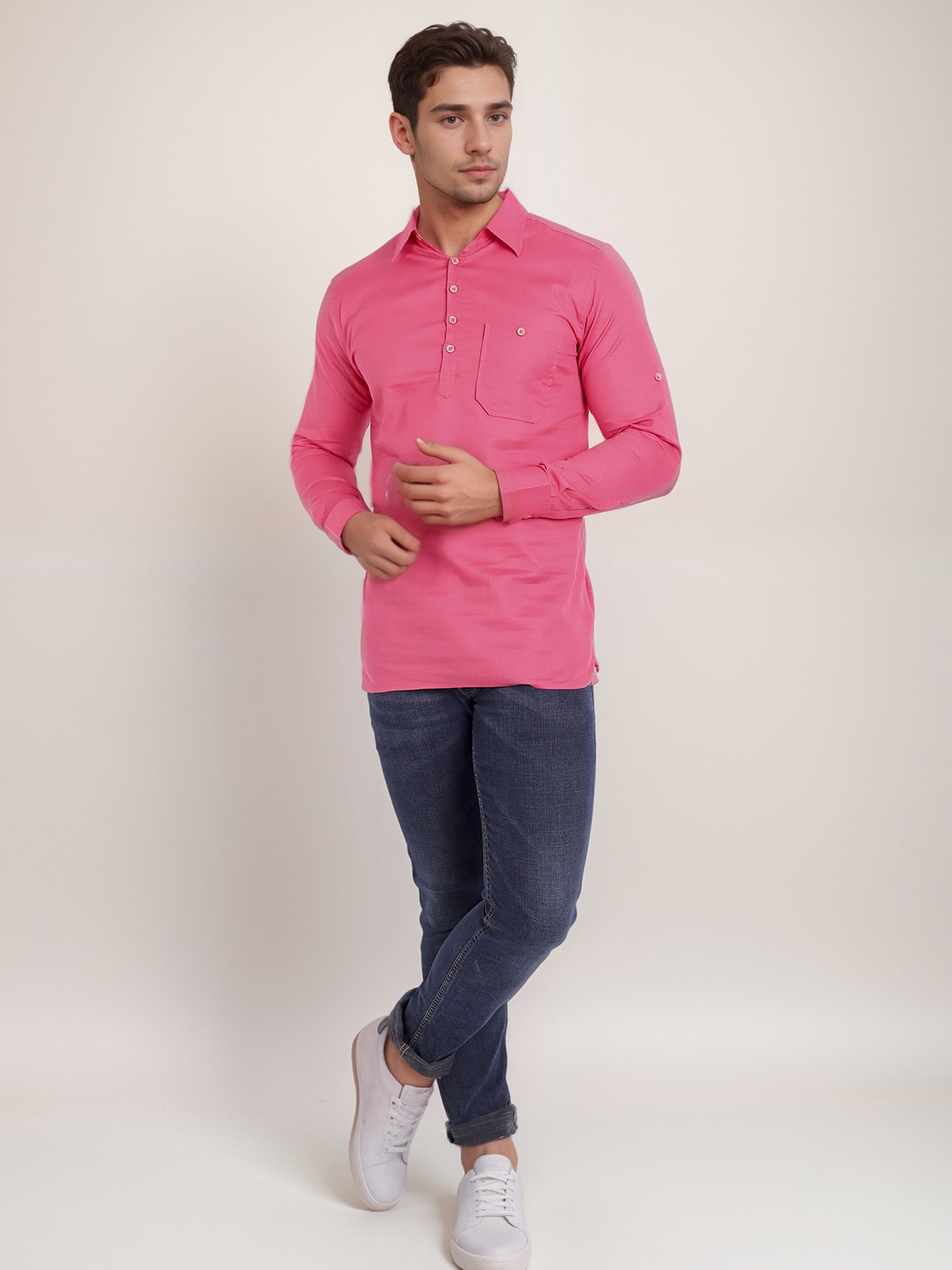 This short kurta seamlessly blends traditional elegance with modern styling, making it a wardrobe essential for every man! 👌