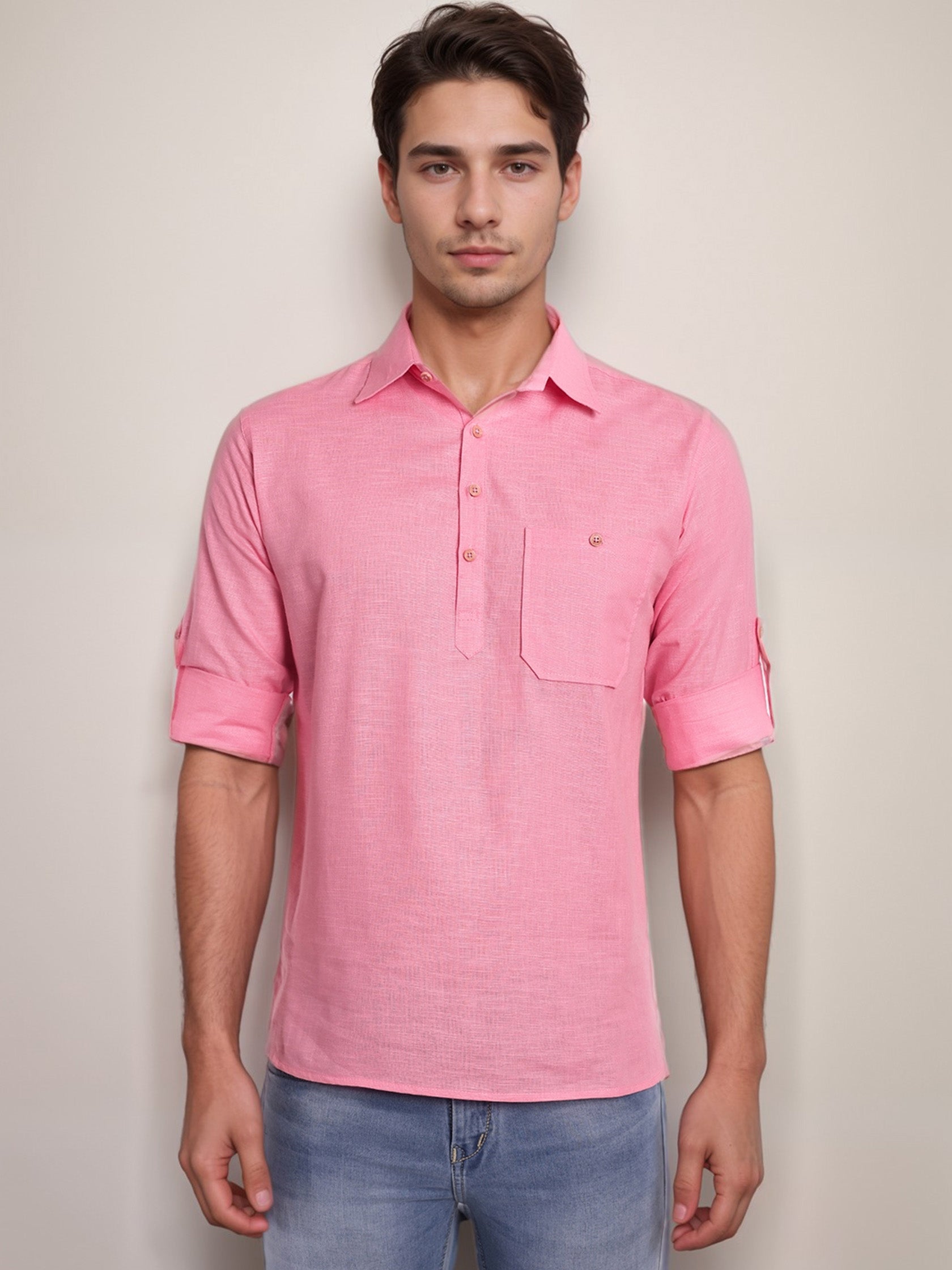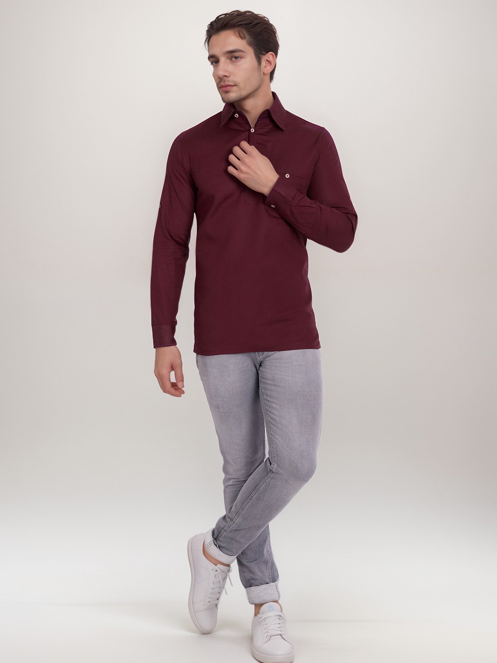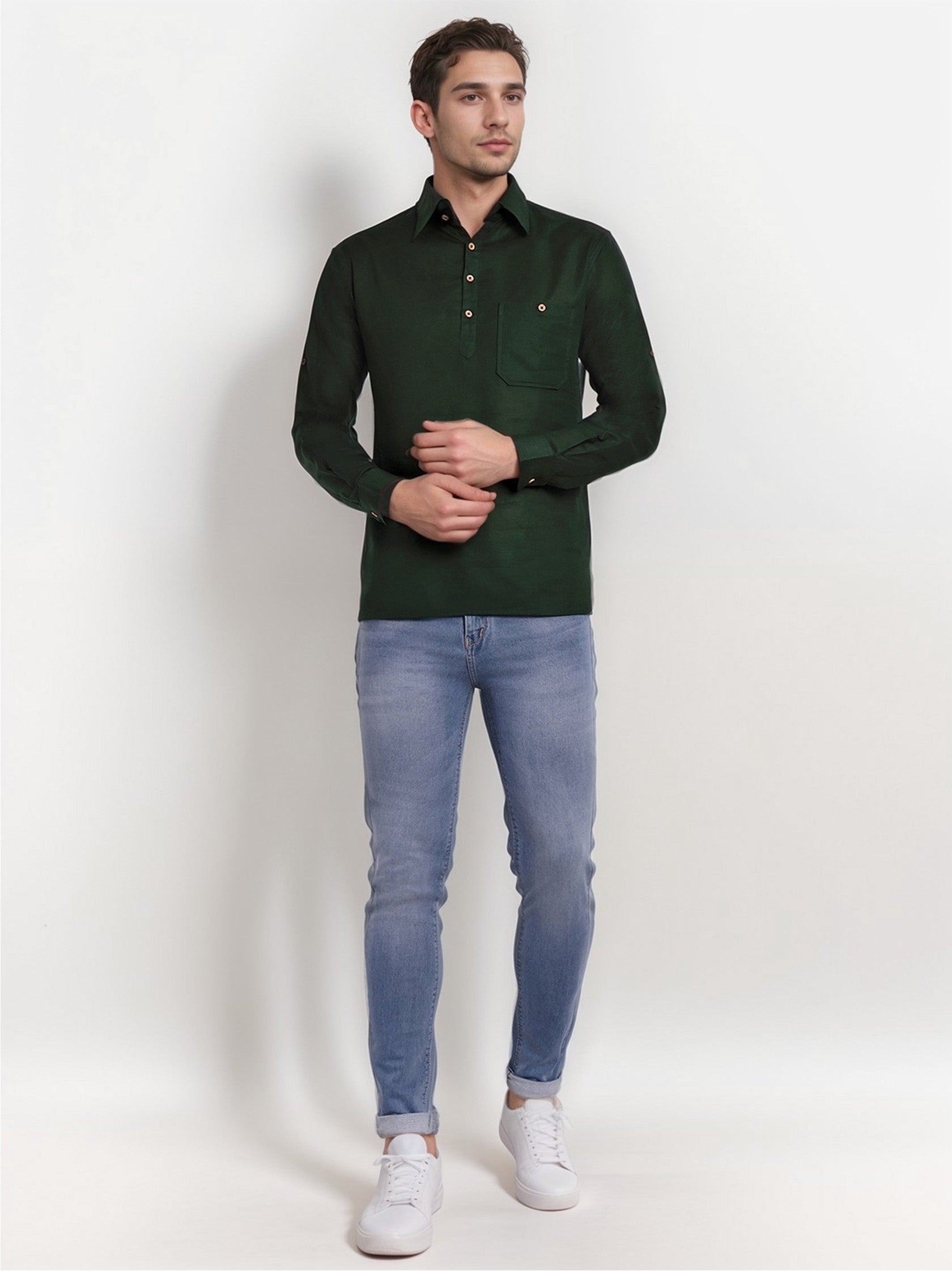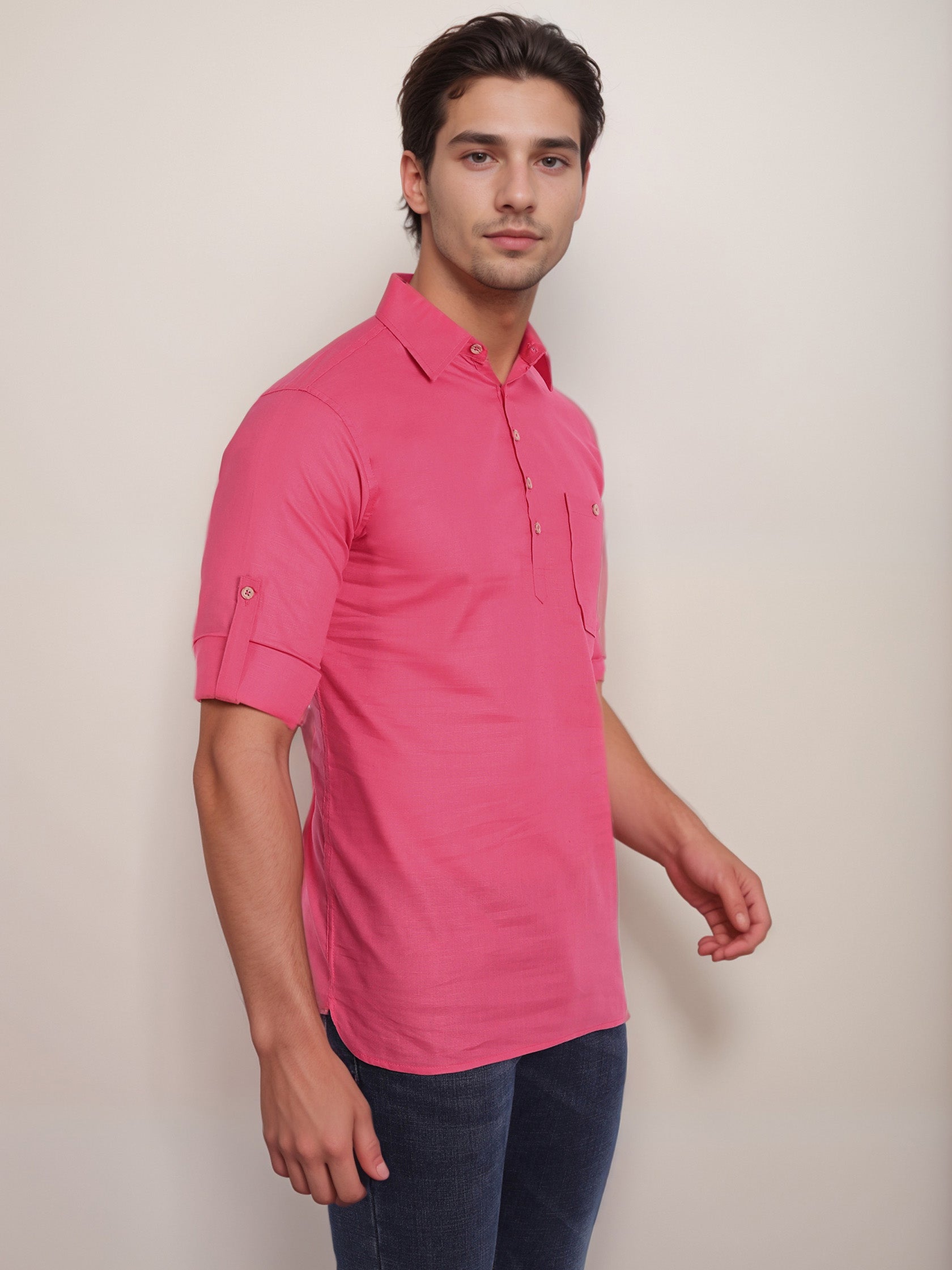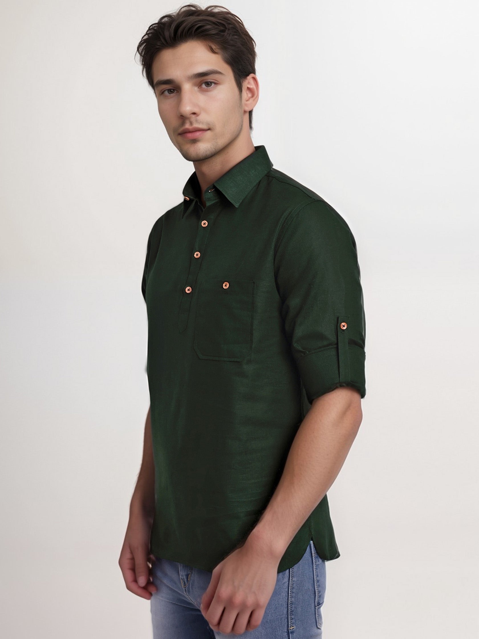 This short kurta seamlessly blends traditional elegance with modern styling, making it a wardrobe essential for every man! 👌