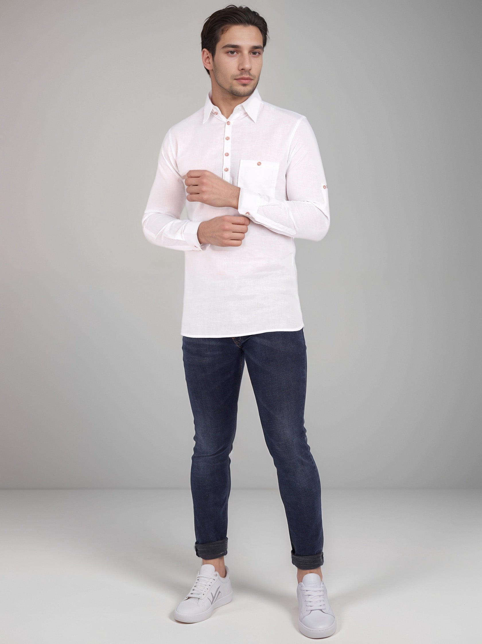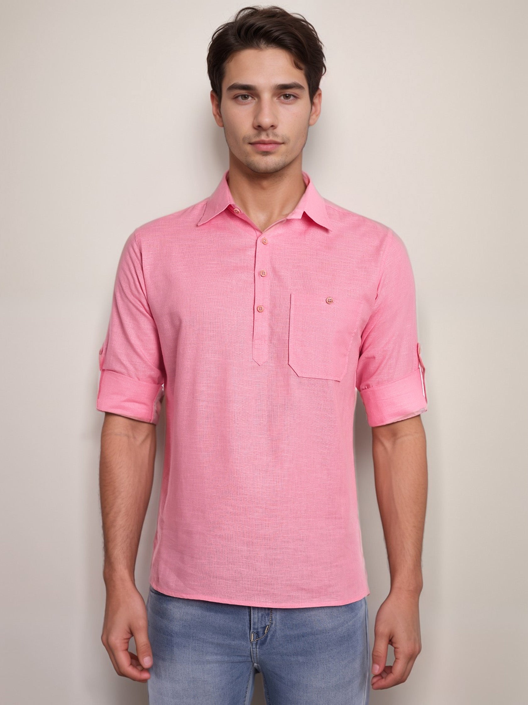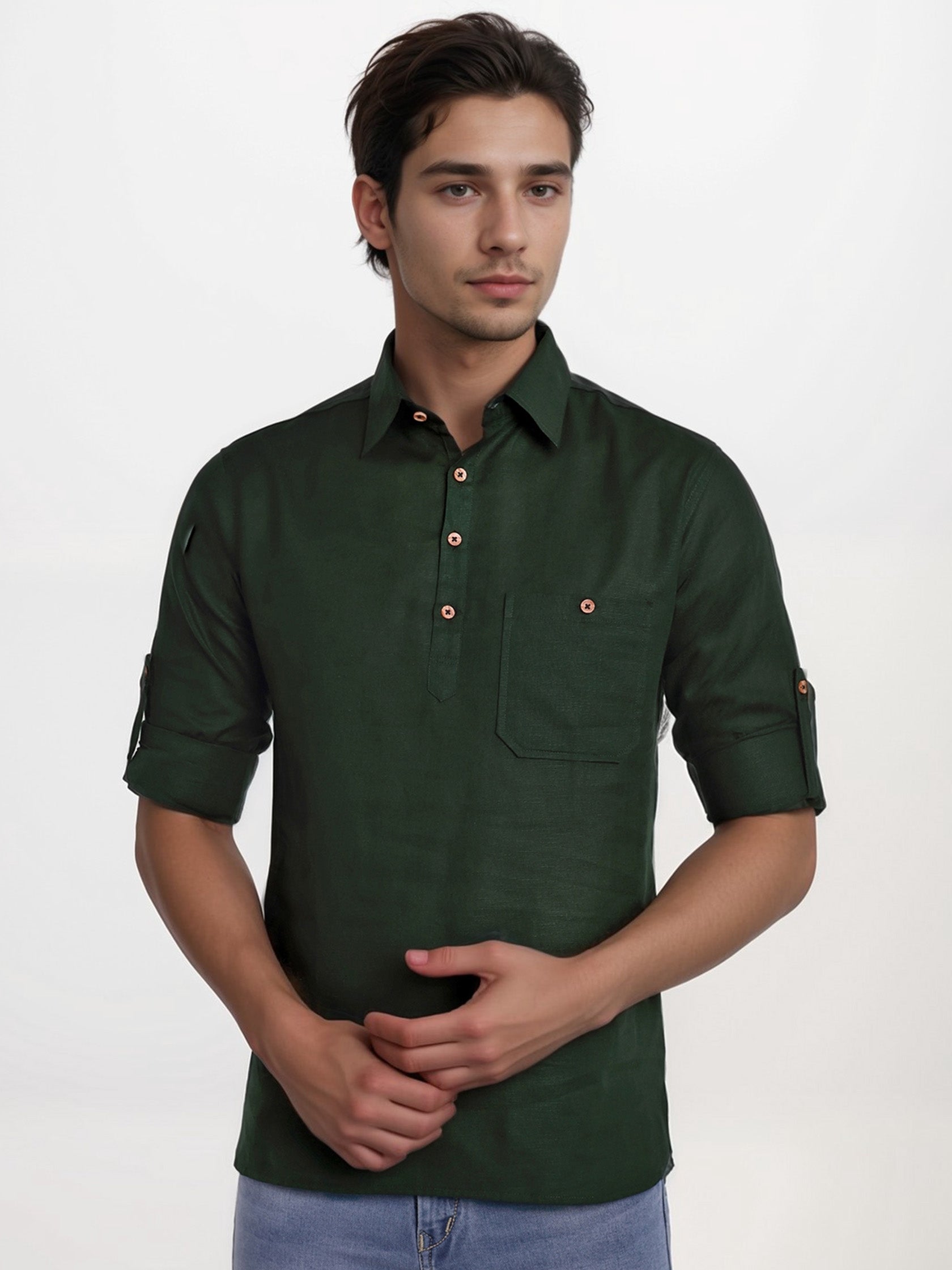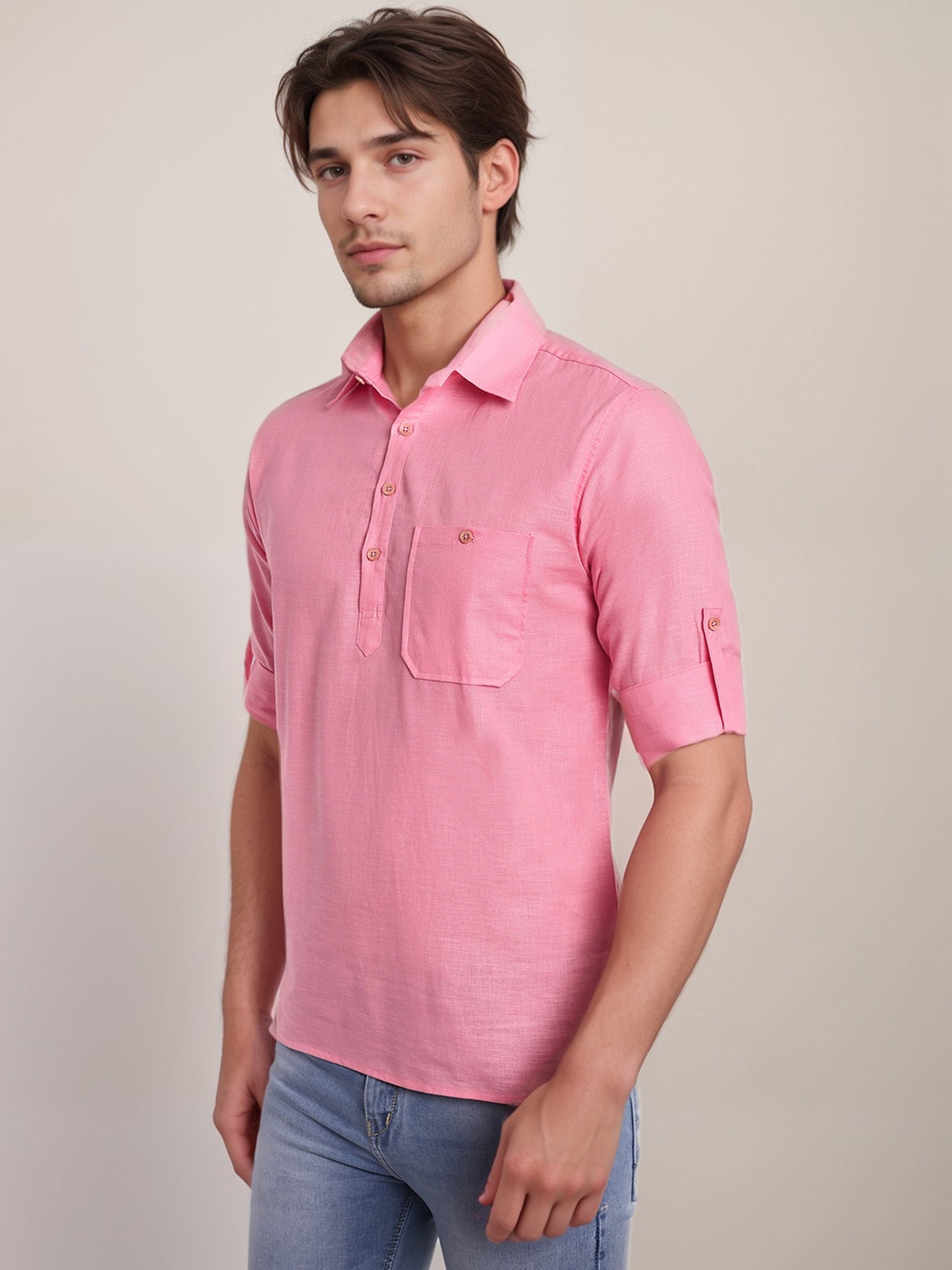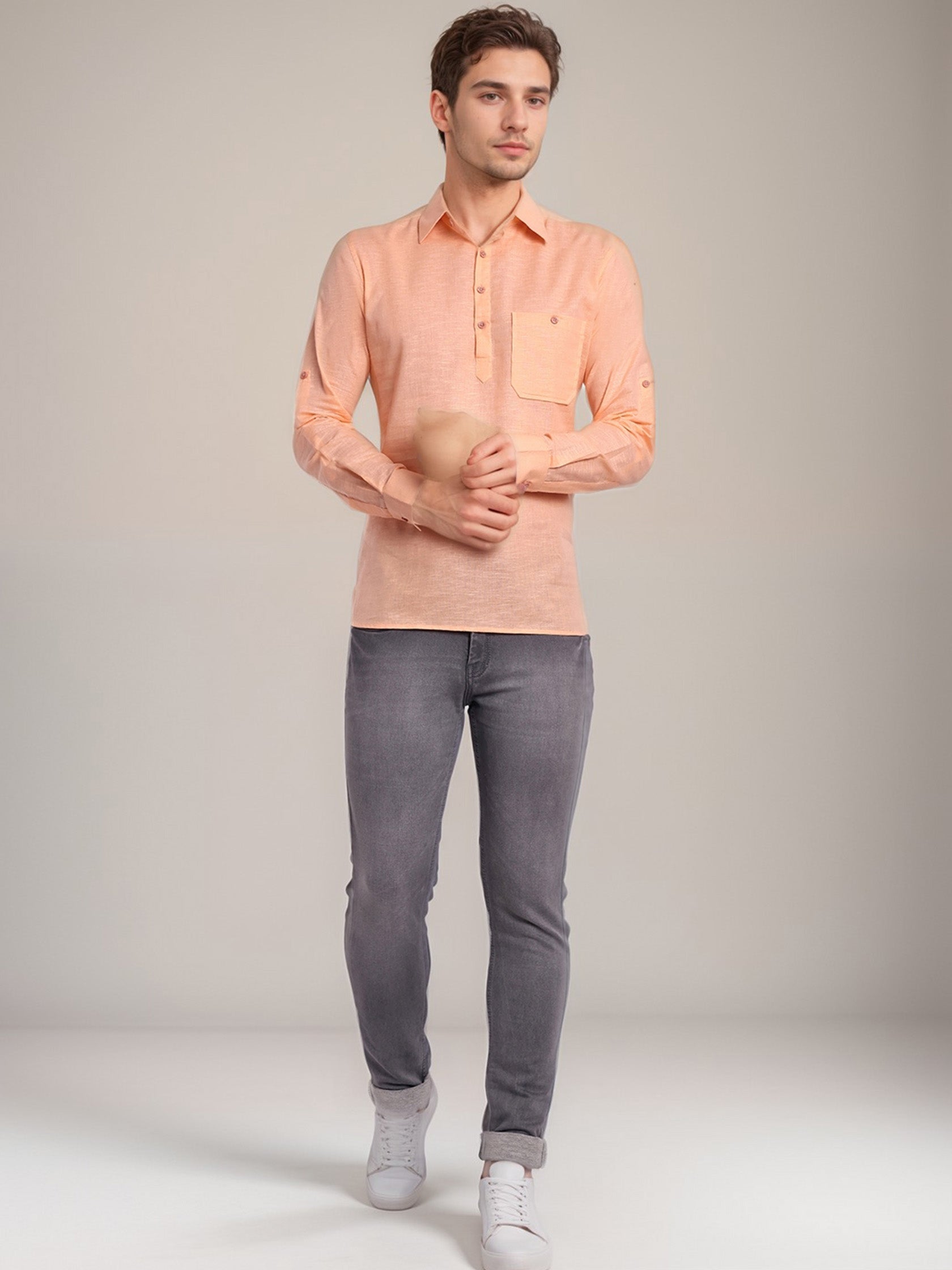 This short kurta seamlessly blends traditional elegance with modern styling, making it a wardrobe essential for every man! 👌