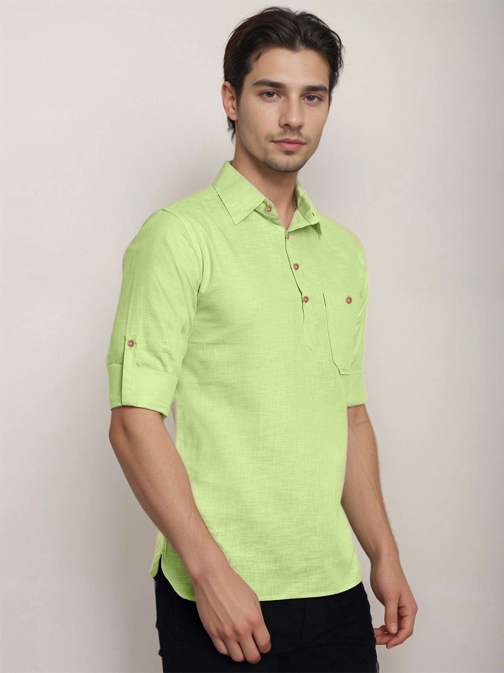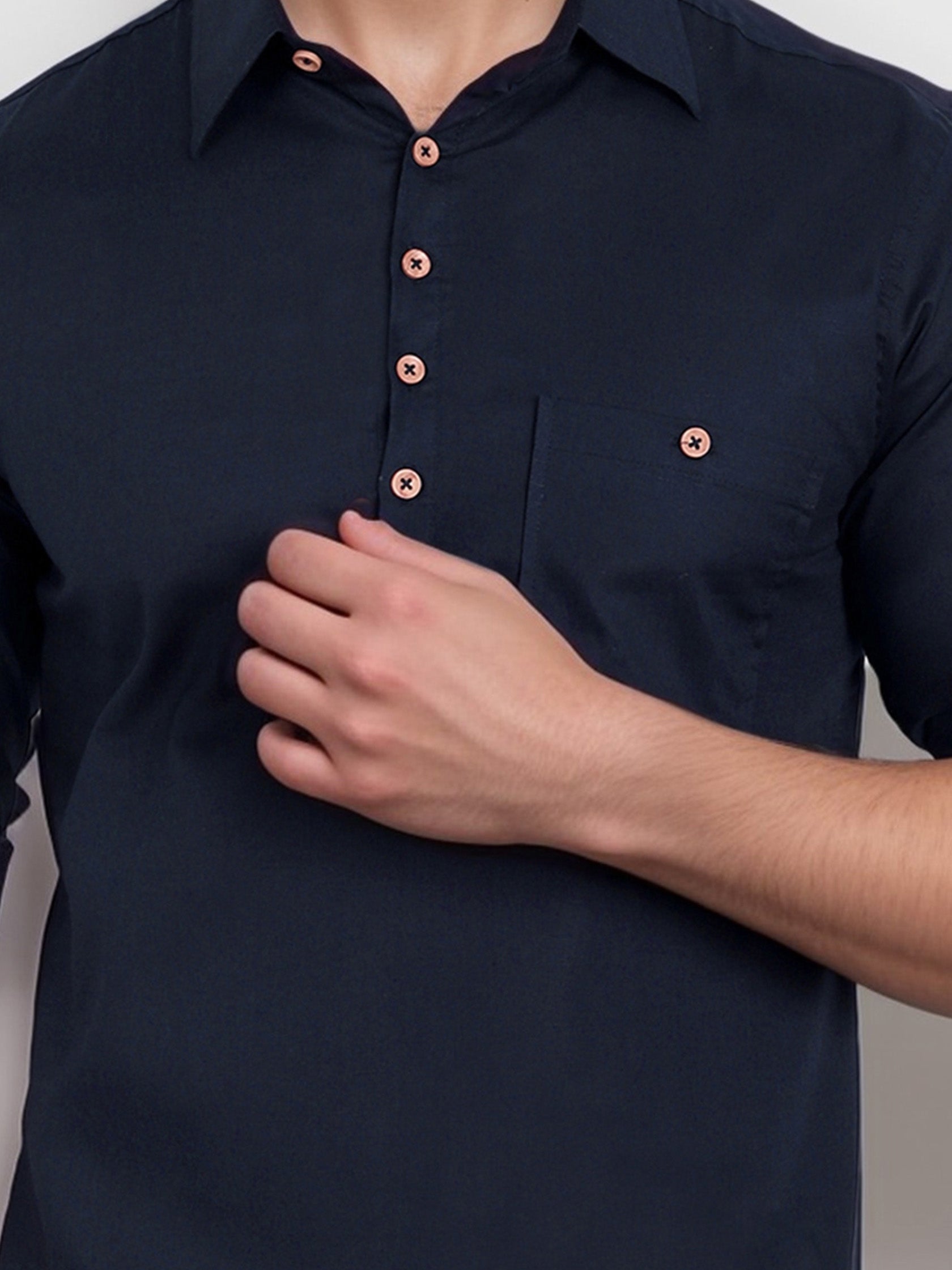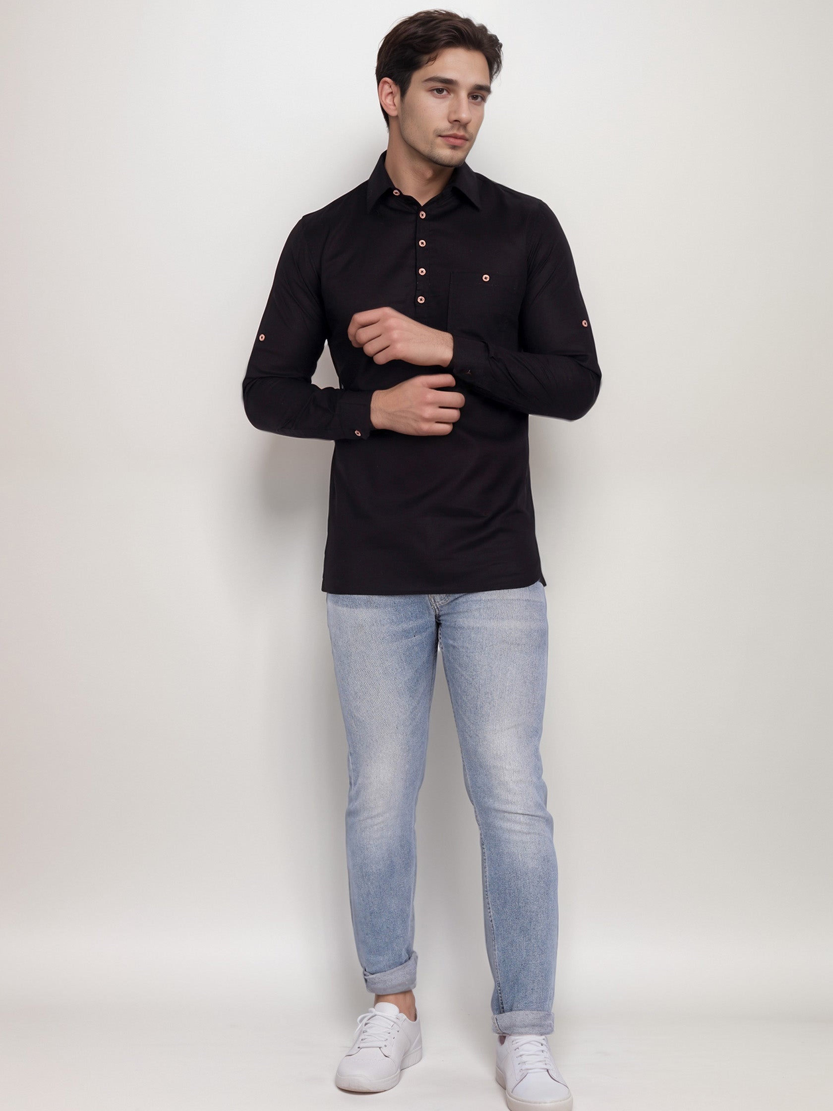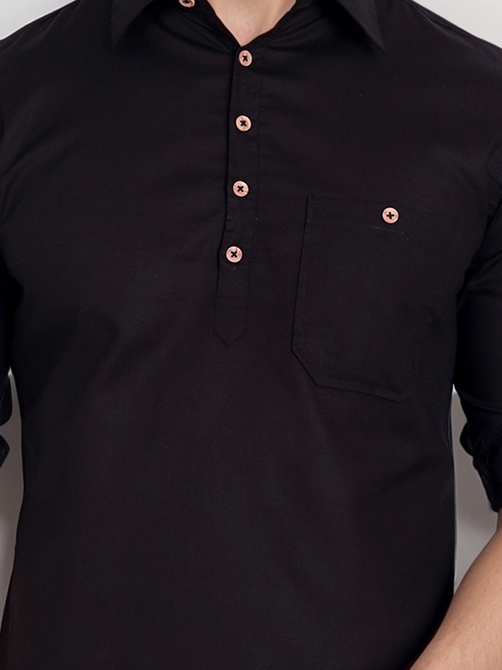 This pure cotton black short kurta is perfect for men who value style and comfort. Its versatile design makes it ideal for any occasion—festivals, parties, or casual outings.